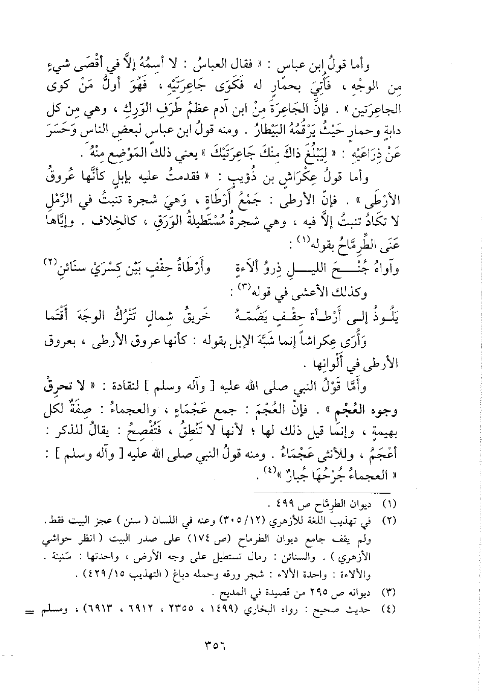 وَأما قَول النَّبِي - صَلَّى اللَّهُ عَلَيْهِ وَسَلَّم َ - لنقادة: " لَا تحرق وُجُوه الْعَجم ". فَإِن الْعَجم: جمع عجماء، والعجماء: صفة لكل بَهِيمَة، وَإِنَّمَا قيل ذَلِك لَهَا؛ لِأَنَّهَا لَا تنطق، فتفصح: يُقَال للذّكر: أعجم، وللأنثى عجماء. وَمِنْه قَول النَّبِي - صَلَّى اللَّهُ عَلَيْهِ وَسَلَّم َ -: " العجماء جرحها جَبَّار ".