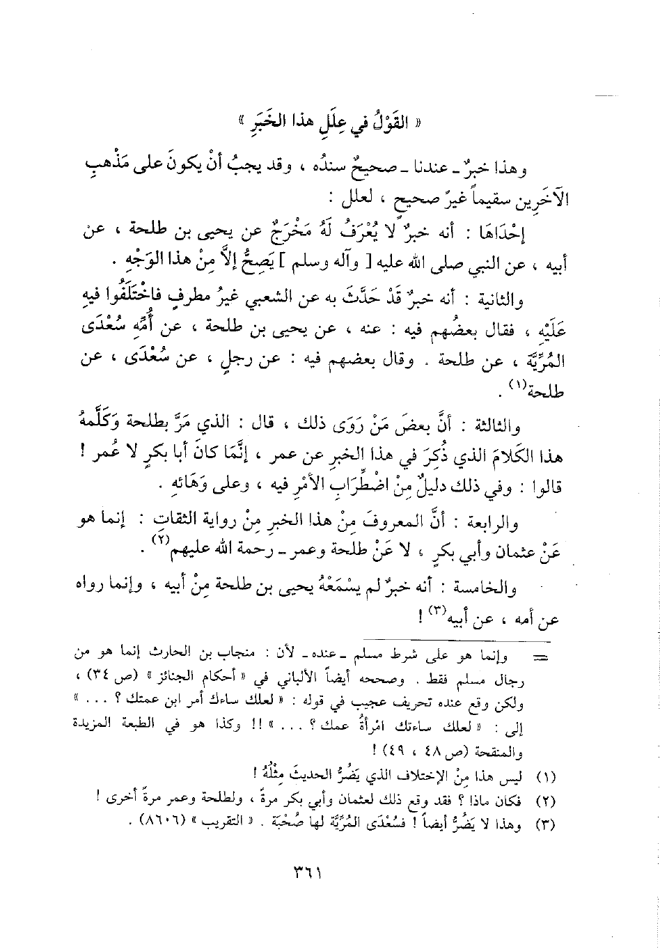 (" القَوْل فِي علل هَذَا الْخَبَر ")