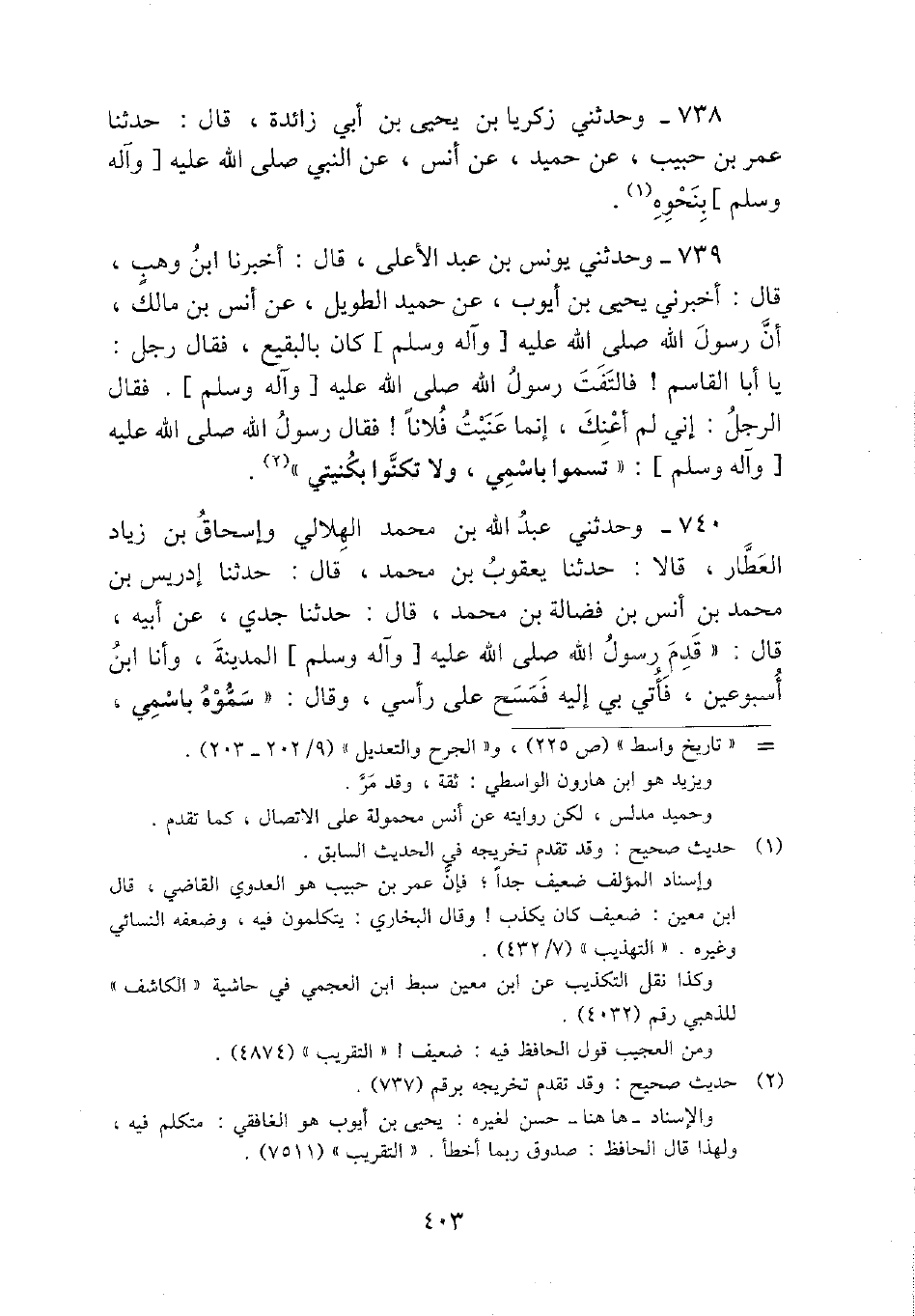 738 - وحَدثني زَكَرِيَّا بن يحيى بن أبي زَائِدَة، قَالَ: حَدثنَا عمر بن حبيب، عَن حميد، عَن أنس، عَن النَّبِي - صَلَّى اللَّهُ عَلَيْهِ وَسَلَّم َ - بِنَحْوِهِ.