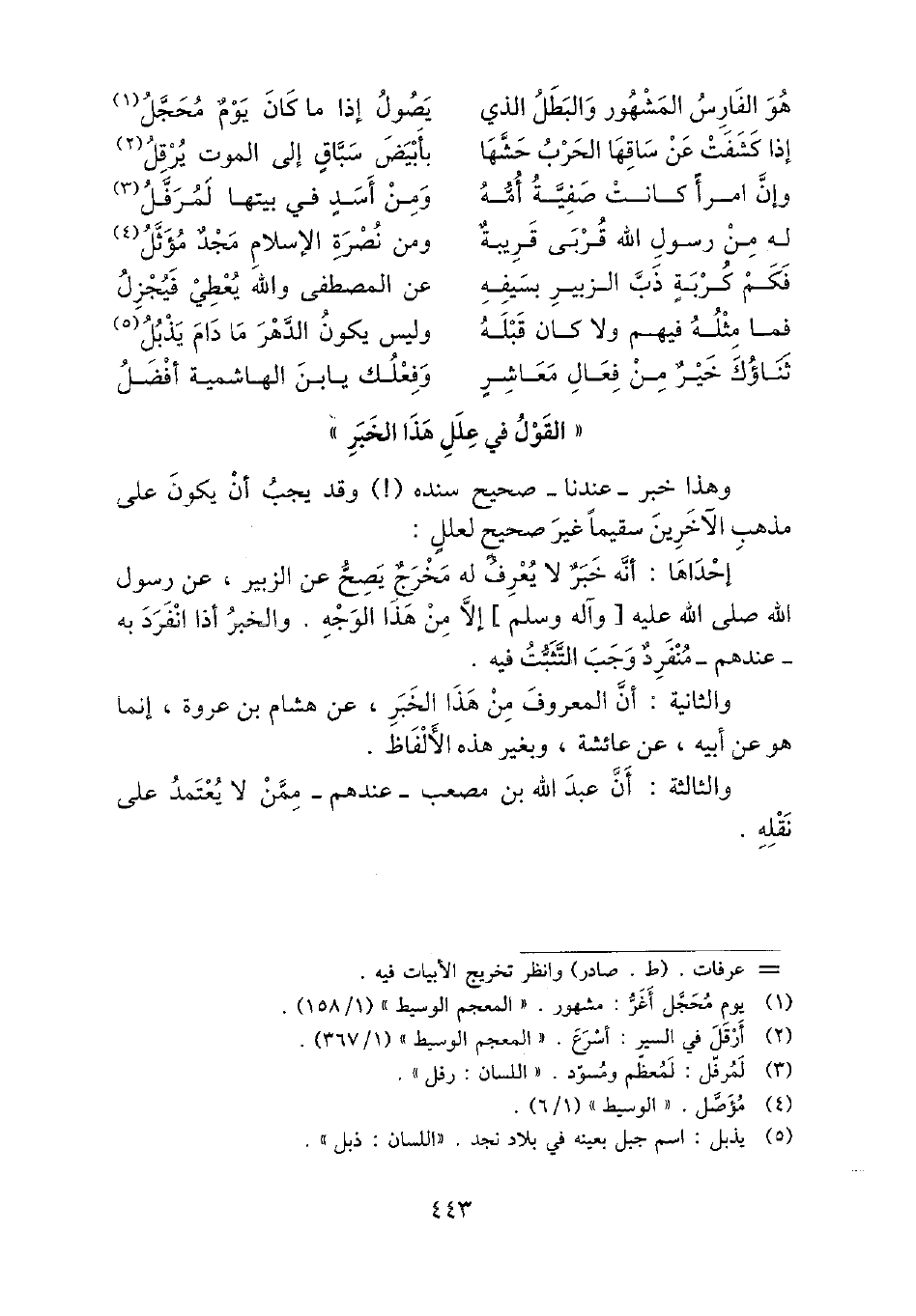 (فكم كربَة ذب الزبير بِسَيْفِهِ ... عَن الْمُصْطَفى وَالله يُعْطي فيجزل)
