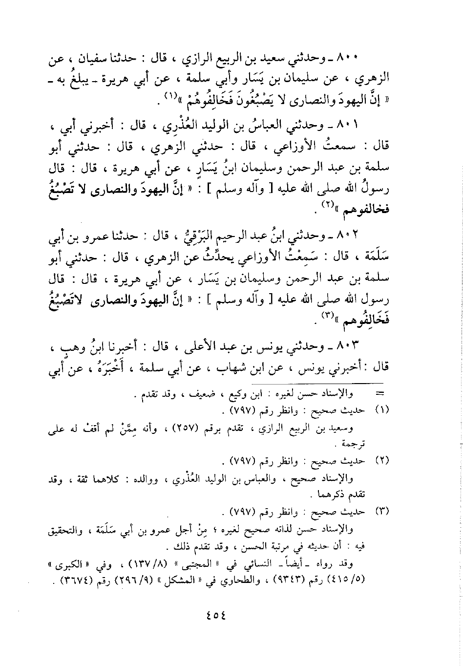 800 - وحَدثني سعيد بن الرّبيع الرَّازِيّ، قَالَ: حَدثنَا سُفْيَان، عَن الزُّهْرِيّ، عَن سُلَيْمَان بن يسَار وَأبي سَلمَة، عَن أبي هُرَيْرَة - يبلغ بِهِ - " إِن الْيَهُود وَالنَّصَارَى لَا يصبغون فخالفوهم ".