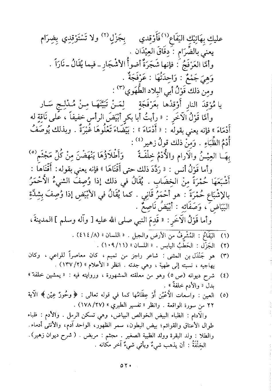 وَأما قَول الآخر: " رَأَيْت أَبَا بكر أَبيض الرَّأْس خَفِيفا، على نَاقَة لَهُ أدماء " فَإِنَّهُ يَعْنِي بقوله: " أدماء ": بَيْضَاء تعلوها غبرة. وَبِذَلِك يُوصف أَدَم الظباء. وَمن ذَلِك قَول زُهَيْر: