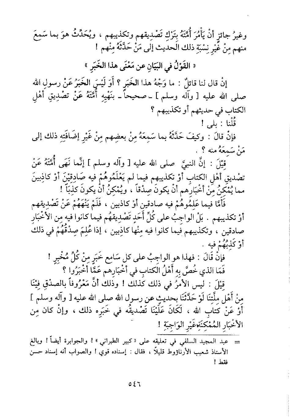(" القَوْل فِي الْبَيَان عَن معنى هَذَا الْخَبَر ")