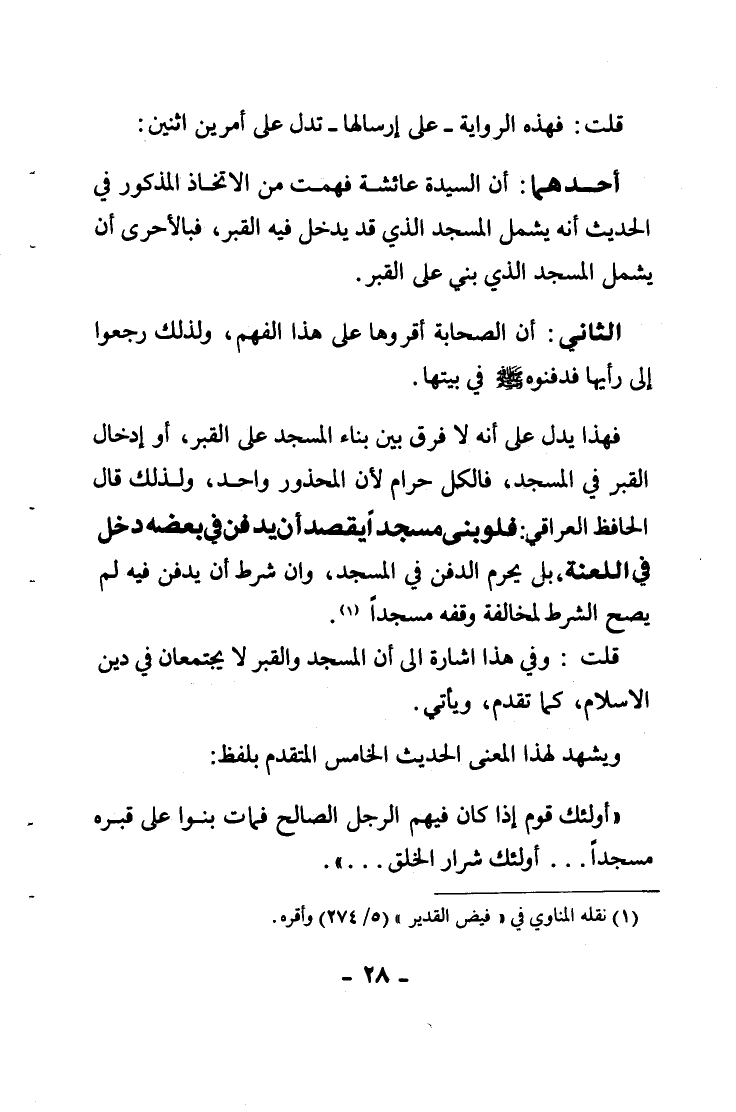 لقد تبين من الأحاديث السابقة خطر اتخاذ القبور مساجد وما على من فعل ذلك من الوعيد الشديد عند الله D فعلينا أن نفقه معنى الاتخاذ المذكور حتى نحذره فأقول: