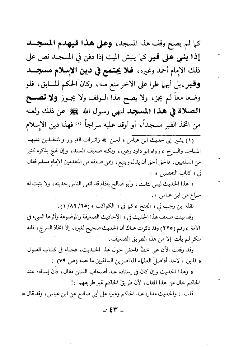 كأنه يشير إلى قول الشافعي " وأكره أن يبنى على القبر مسجد. . " الخ كلامه الذي نقلته بتمامه فيما سبق (ص 27) وعلى هذا أتباعه من الشافعية كما في " التهذيب " وشرحه " المجموع " ومن الغريب أنهم يحتجون على ذلك ببعض الأحاديث المتقدمة مع أنها صريحة في تحريم ذلك ولعن فاعله ولو أن الكراهة كانت عندهم للتحريم لقرب الأمر ولكنها لديهم للتنزيه فكيف يتفق القول ب (الكراهة) مع تلك الأحاديث التي يستدلون بها عليها؟