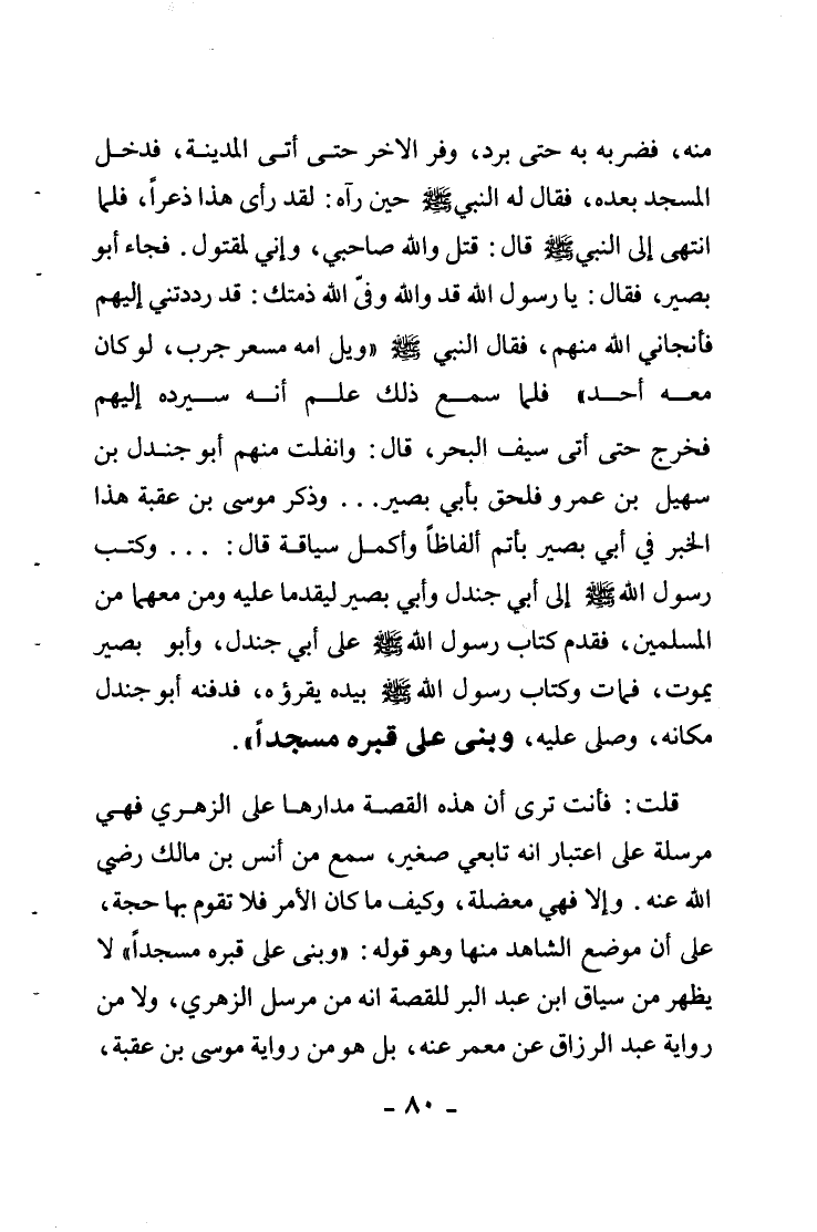 4 - عن أنس: كان يكره أن يبنى مسجد بين القبور (89)