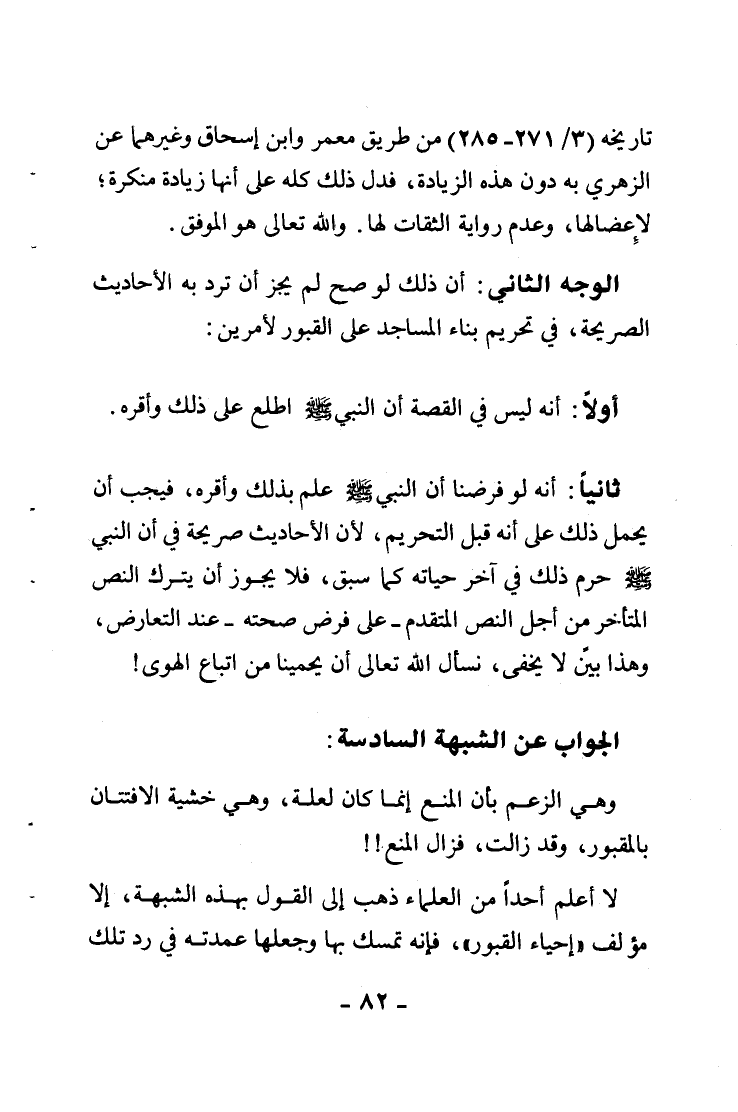 خرجنا مع عمر في حجة حجها فقرأ بنا في الفجر} ألم تر كيف فعل ربك بأصحاب الفيل { (90) و} لإيلاف قريش { (91) فلما قضى حجه ورجع والناس يتبدرون فقال: ما هذا؟ فقال: مسجد صلى فيه رسول الله A فقال: هكذا هلك أهل الكتاب اتخذوا آثار أنبيائهم بيعا من عرضت له منكم فيها الصلاة فليصل ومن لم يعرض له منكم فيه الصلاة فلا يصل