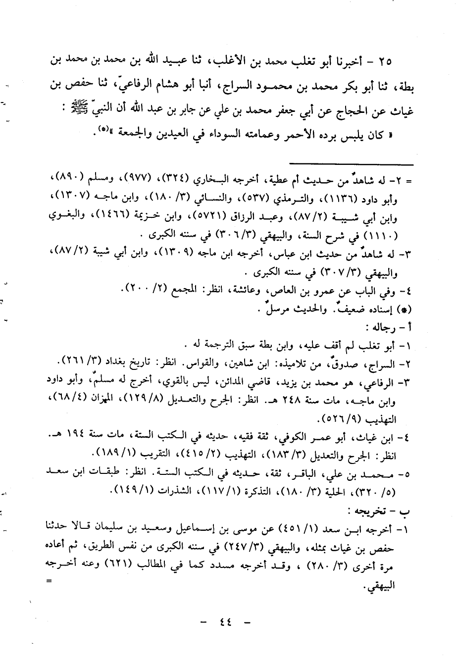 25 - أَخْبَرَنَا أَبُو تَغْلِبَ مُحَمَّدُ بْنُ الأَغْلَبِ، ثنا عُبَيْدُ اللَّهِ بْنُ مُحَمَّدِ بْنِ مُحَمَّدِ بْنِ بَطَّةَ، ثنا أَبُو بَكْرٍ مُحَمَّدُ بْنُ مَحْمُودٍ السَّرَّاجُ، أَنْبَا أَبُو هِشَامٍ الرِّفَاعِيُّ، ثنا حَفْصُ بْنُ غِيَاثٍ عَنِ الْحَجَّاجِ عَنْ أَبِي جَعْفَرٍ مُحَمَّدِ بْنِ عَلِيٍّ عَنْ جَابِرِ بْنِ عَبْدِ اللَّهِ أَنَّ النَّبِيَّ صَلَّى اللَّهُ عَلَيْهِ وَسَلَّمَ: