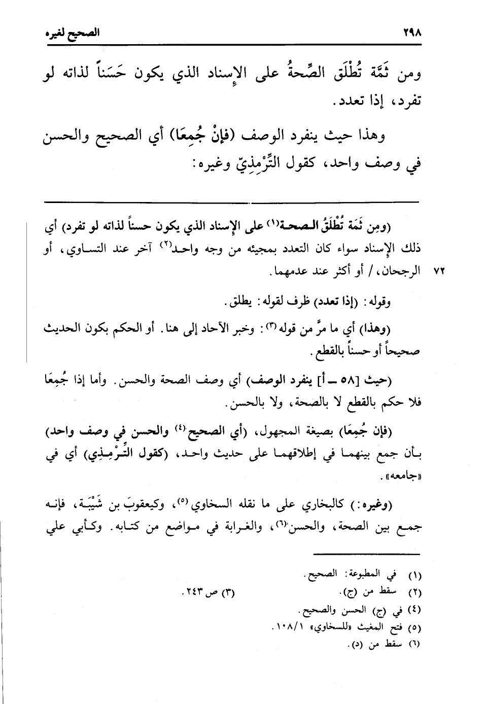 (وَمن ثَمَة تُطْلقُ الصِّحَّة على الْإِسْنَاد الَّذِي يكون حسنا لذاته لَو تفرد) أَي ذَلِك الْإِسْنَاد سَوَاء كَانَ التَّعَدُّد بمجيئه من وَجه وَاحِد آخر عِنْد التَّسَاوِي، أَو الرجحان، / أَو أَكثر عِنْد عدمهما.