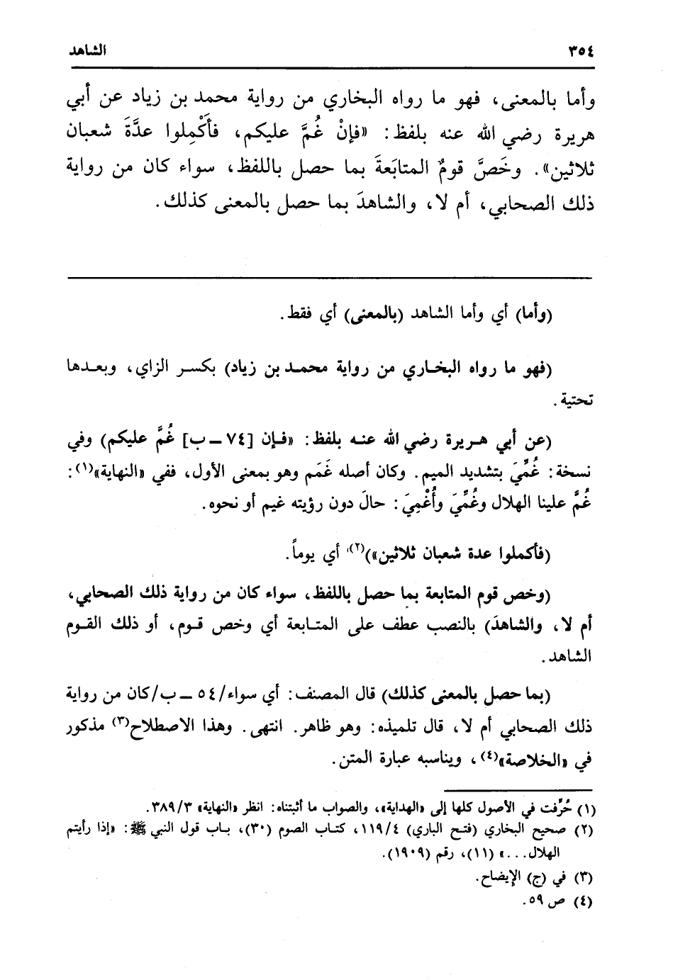 (وَأما) أَي وَأما الشَّاهِد (بِالْمَعْنَى) أَي فَقَط.