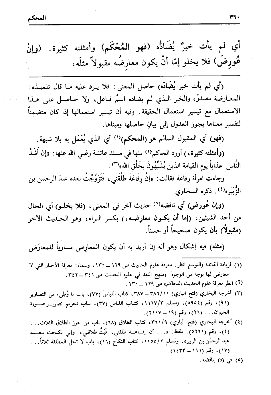 (وَإِن عُورض) أَي ناقضه حَدِيث آخر فِي الْمَعْنى، (فَلَا يَخْلُو) أَي الْحَال من أحد الشَّيْئَيْنِ، (إِمَّا أَن يكون معارِضه) بِكَسْر الرَّاء، وَهُوَ الحَدِيث الآخر (مَقْبُولًا) بِأَن يكون صَحِيحا أَو حسنا.
