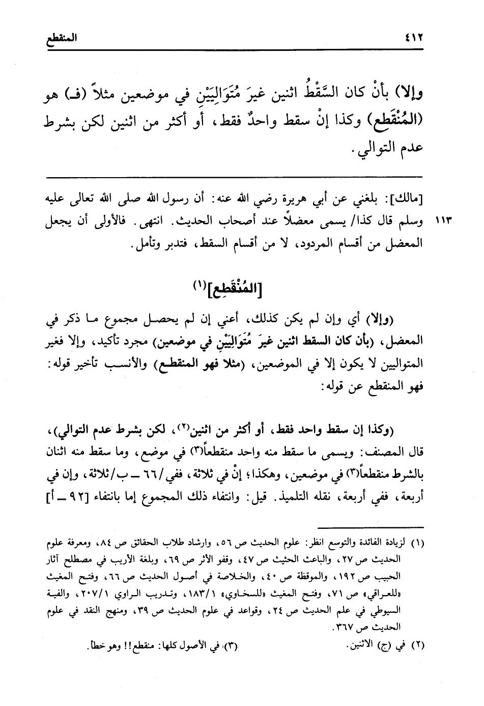 (وَإِلَّا) أَي وَإِن لم يكن كَذَلِك، أَعنِي إِن لم يحصل مَجْمُوع مَا ذكر فِي المعضل، (بِأَن كَانَ السقط اثْنَيْنِ غير متواليين فِي موضِعين) مُجَرّد تَأْكِيد، وَإِلَّا فَغير المتواليين لَا يكون إِلَّا فِي الْمَوْضِعَيْنِ، (مثلا فَهُوَ الْمُنْقَطع) والأنسب تَأْخِير قَوْله: فَهُوَ الْمُنْقَطع عَن قَوْله: