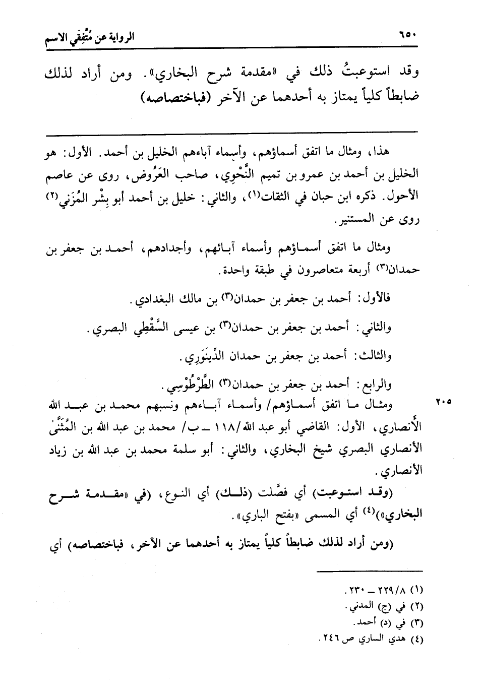 وَمِثَال مَا اتّفق أَسمَاؤُهُم وَأَسْمَاء آبَائِهِم، وأجدادهم، أَحْمد بن جَعْفَر بن حمدَان أَرْبَعَة متعاصرون فِي طبقَة وَاحِدَة.