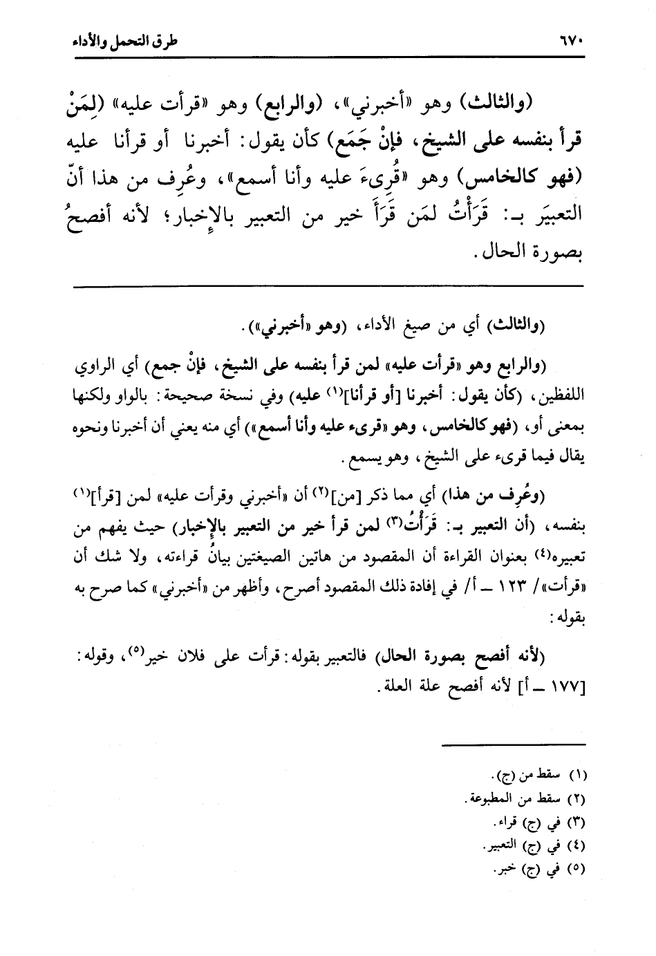 (وعُرِف من هَذَا) أَي مِمَّا ذكر [من] أَن " أَخْبرنِي وقرأت عَلَيْهِ " لمن [قَرَأَ] بِنَفسِهِ، (أَن التَّعْبِير ب: قَرَأتُ لمن قَرَأَ خير من التَّعْبِير بالإخبار) حَيْثُ يفهم من تَعْبِيره بعنوان الْقِرَاءَة أَن الْمَقْصُود من هَاتين الصيغتين بَيَان قِرَاءَته، وَلَا شكّ أَن " قَرَأت " / 123 - أ / فِي إِفَادَة ذَلِك الْمَقْصُود أصرح، وَأظْهر من " أَخْبرنِي " كَمَا صرح بِهِ بقوله: