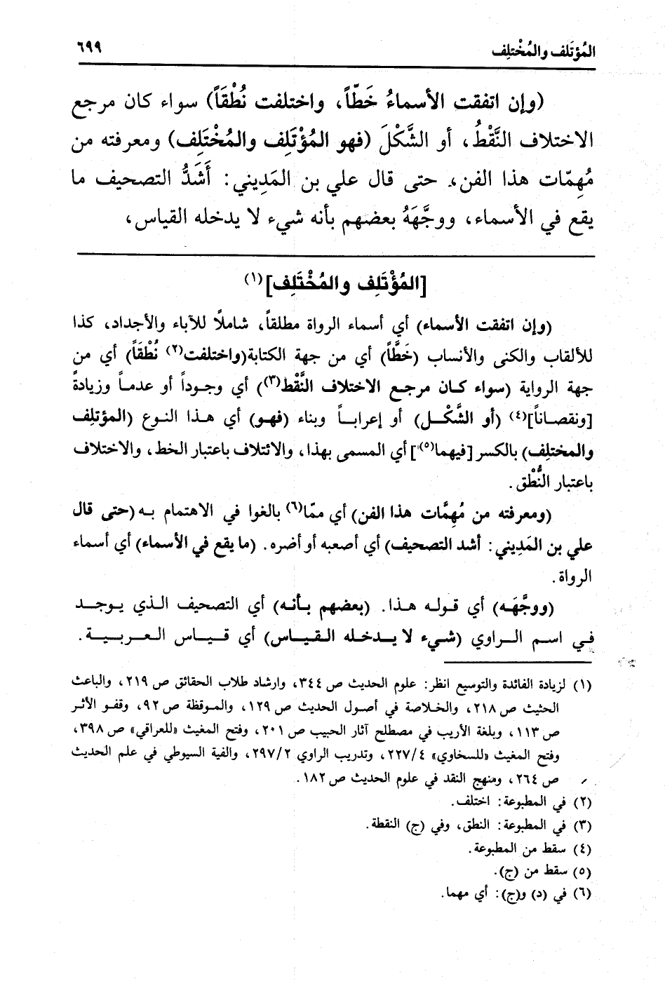 (ومعرفته من مُهِمَّات هَذَا الْفَنّ) أَي مِمَّا بالغوا فِي الاهتمام بِهِ (حَتَّى قَالَ عَليّ بن المَدِيني: أَشد التَّصْحِيف) أَي أصعبه أَو أضره. (مَا يَقع فِي الْأَسْمَاء) أَي أَسمَاء الروَاة.