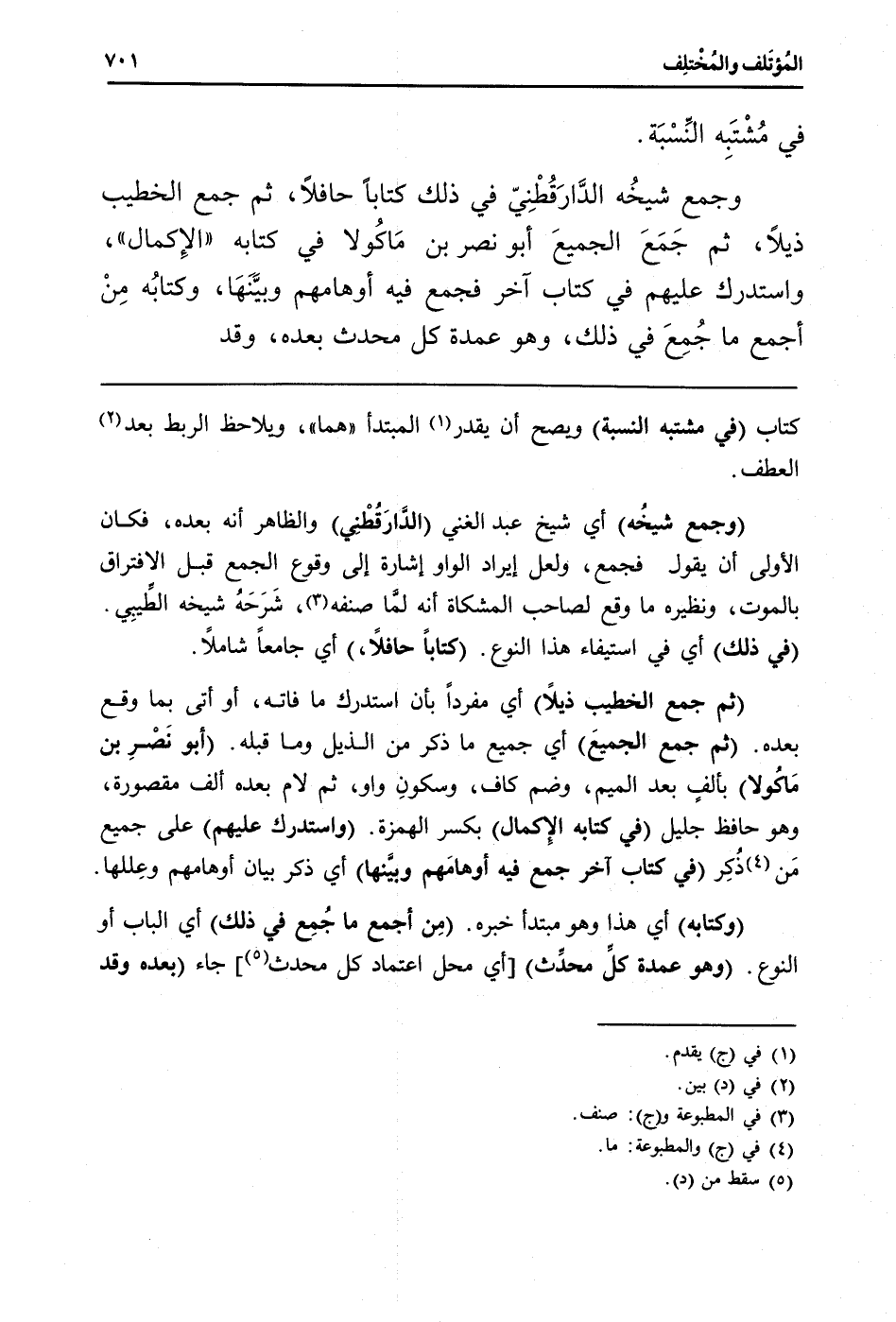 كتاب (فِي مشتبه النِّسْبَة) وَيصِح أَن يقدر الْمُبْتَدَأ " هما "، ويلاحظ الرَّبْط بعد الْعَطف.