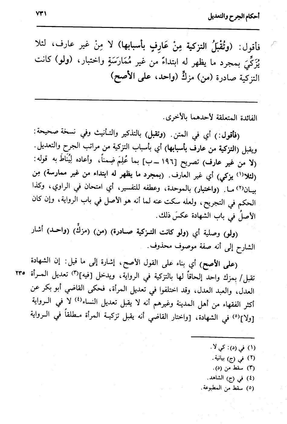 (فَأَقُول:) أَي فِي الْمَتْن. (وَتقبل) بالتذكير والتأنيث وَفِي نُسْخَة صَحِيحَة: وَيقبل (التَّزْكِيَة من عَارِف بأسبابها) أَي بِأَسْبَاب التَّزْكِيَة من مَرَاتِب الْجرْح وَالتَّعْدِيل. (لَا من غير عَارِف) تَصْرِيح [196 - ب] بِمَا عُلِمَ ضِمناً، وَأَعَادَهُ لِيُنَاطَ بِهِ قَوْله: (لِئَلَّا يُزكي) أَي غير الْعَارِف. (بِمُجَرَّد مَا يظْهر لَهُ ابْتِدَاء من غير ممارسة) من بَيَان مَا. (واختبار) بِالْمُوَحَّدَةِ، وَعطفه للتفسير، أَي امتحان فِي الرَّاوِي، وَكَذَا الحكم فِي التجريح، وَلَعَلَّه سكت عَنهُ لما أَنه هُوَ الأَصْل فِي بَاب الرِّوَايَة، وَإِن كَانَ الأَصْل فِي بَاب الشَّهَادَة عكسَ ذَلِك.