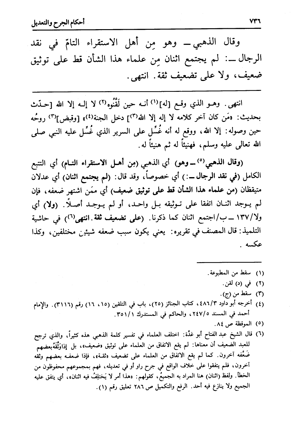 (وَقَالَ الذَّهَبِيّ - وَهُوَ) أَي الذَّهَبِيّ (مِن أهل الاستقراء التَّام) أَي التتبع الْكَامِل (فِي نقد الرِّجَال -:) أَي خُصُوصا، وَقد قَالَ: (لم يجْتَمع اثْنَان) أَي عَدْلَانِ متيقظان (من عُلَمَاء هَذَا الشَّأْن قطّ على تَوْثِيق ضَعِيف) أَي ممَن أشتهر ضعفه، فَإِن لم يُوجد اثْنَان اتفقَا على توثيقه بل وَاحِد، أَو لم يُوجد أصلا. (وَلَا) أَي وَلَا / 137 - ب / اجْتمع اثْنَان كَمَا ذكرنَا. (على تَضْعِيف ثِقَة. انْتهى) فِي حَاشِيَة التلميذ: قَالَ المُصَنّف فِي تَقْرِيره: يَعْنِي يكون سَبَب ضعفه شَيْئَيْنِ مُخْتَلفين، وَكَذَا عَكسه.