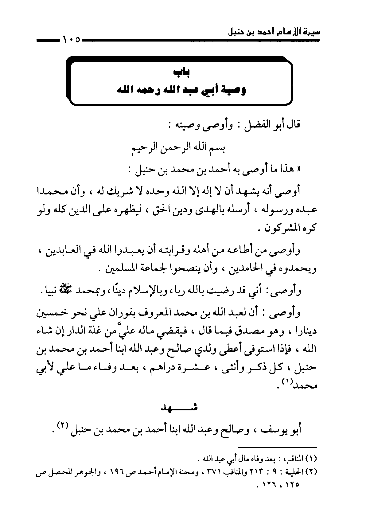 انْظُر إِلَى الْيَوْم الَّذِي تصير إِلَيْهِ فِيهِ أَي يَوْم هُوَ حَتَّى اعرفه _ فَقَالَ ذَاك إِلَيْكُم فَقَالَ يَوْم الْأَرْبَعَاء يَوْم خَال وَخرج يَعْقُوب فَلَمَّا كَانَ الْغَد جَاءَ فَقَالَ الْبُشْرَى يَا أَبَا عبد الله أَمِير الْمُؤمنِينَ يقْرَأ عَلَيْك السَّلَام وَيَقُول قد أعفيتك من لبس السوَاد وَالرُّكُوب إِلَى وَالِي وُلَاة العهود وَإِلَى الدَّار فان شِئْت فالبس الْقطن وان شِئْت فالبس الصُّوف فَجعل يحمد الله على ذَلِك د