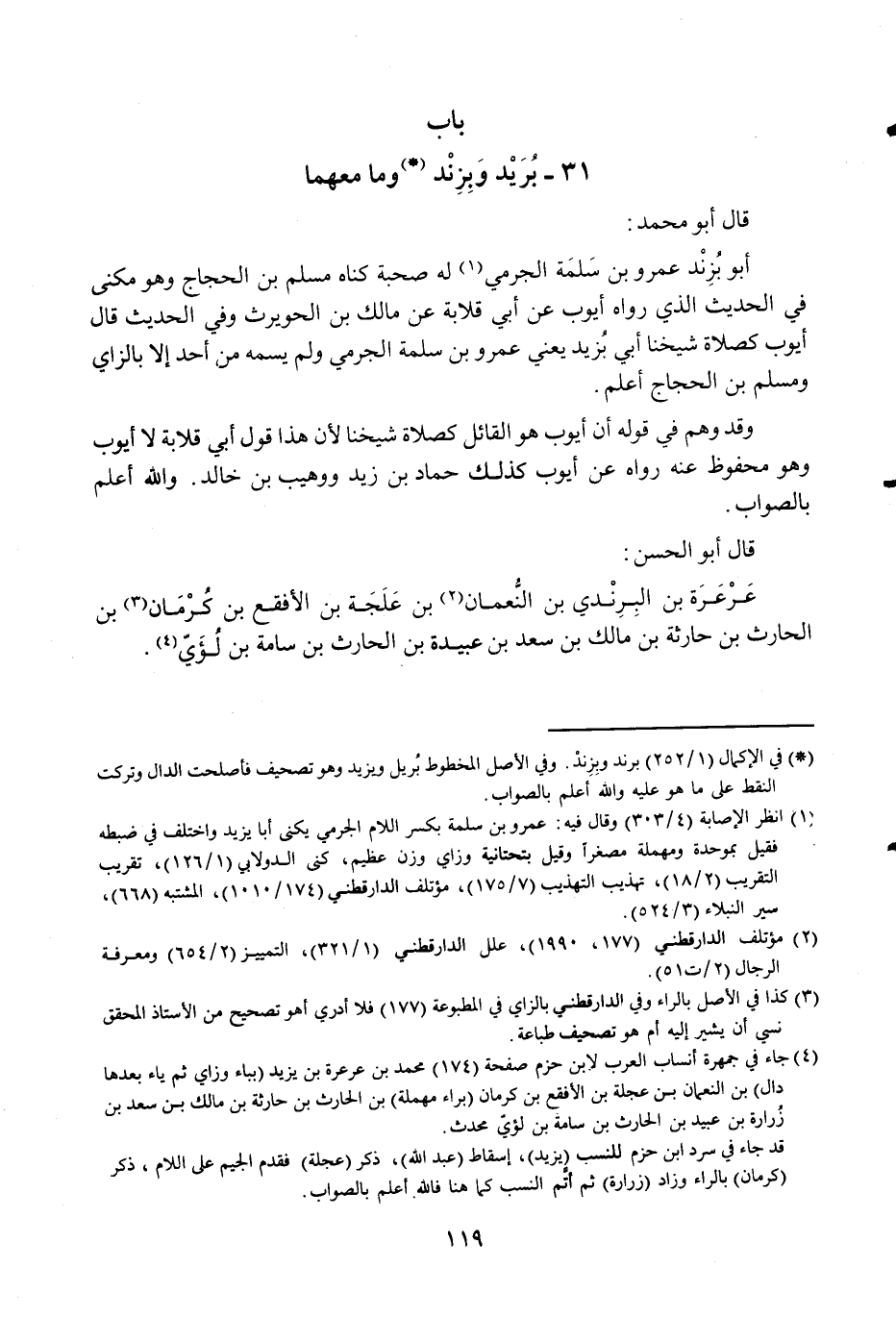 أَبُو بزند عَمْرو بن سَلمَة الْجرْمِي لَهُ صُحْبَة كناه مُسلم بن الْحجَّاج وَهُوَ مكنى فِي الحَدِيث الَّذِي رَوَاهُ أَيُّوب عَن أبي قلَابَة عَن مَالك بن الْحُوَيْرِث وَفِي الحَدِيث قَالَ أَيُّوب كَصَلَاة شَيخنَا أبي بزيد يَعْنِي عَمْرو بن سَلمَة الْجرْمِي وَلم يسمه من أحد إِلَّا بالزاي وَمُسلم بن الْحجَّاج أعلم