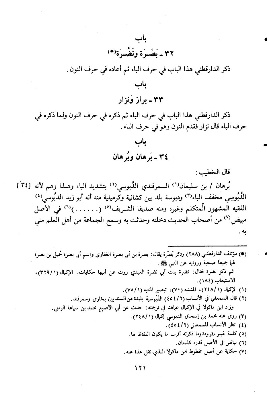 برهَان بن سُلَيْمَان السَّمرقَنْدِي الدبوسي بتَشْديد الْبَاء وَهَذَا وهم لِأَنَّهُ الدبوسي مخفف الْبَاء ودبوسة بلد بَين كشانية وكرميلية مِنْهُ أَنه أَبُو زيد الدبوسي الْفَقِيه الْمَشْهُور الْمُتَكَلّم وَغَيره وَمِنْه صديقا الشريف فِي الأَصْل مبيض من أَصْحَاب الحَدِيث دَخلته وَحدثت بِهِ وَسمع الْجَمَاعَة من أهل الْعلم مني بِهِ