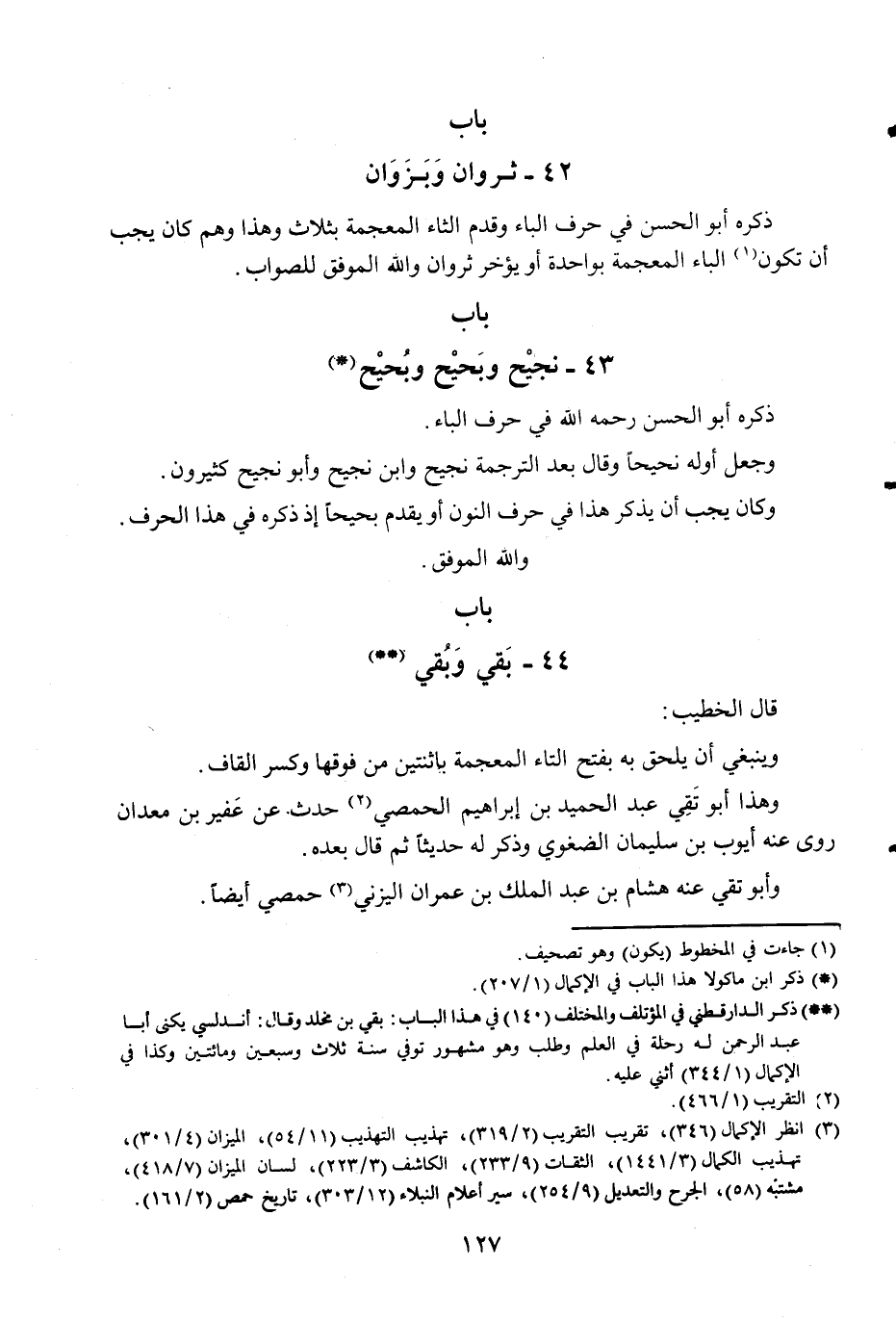 ذكره أَبُو الْحسن فِي حرف الْبَاء وَقدم الثَّاء الْمُعْجَمَة بِثَلَاث وَهَذَا وهم كَانَ يجب أَن تكون الْبَاء الْمُعْجَمَة بِوَاحِدَة أَو يُؤَخر ثروان وَالله الْمُوفق للصَّوَاب بَاب