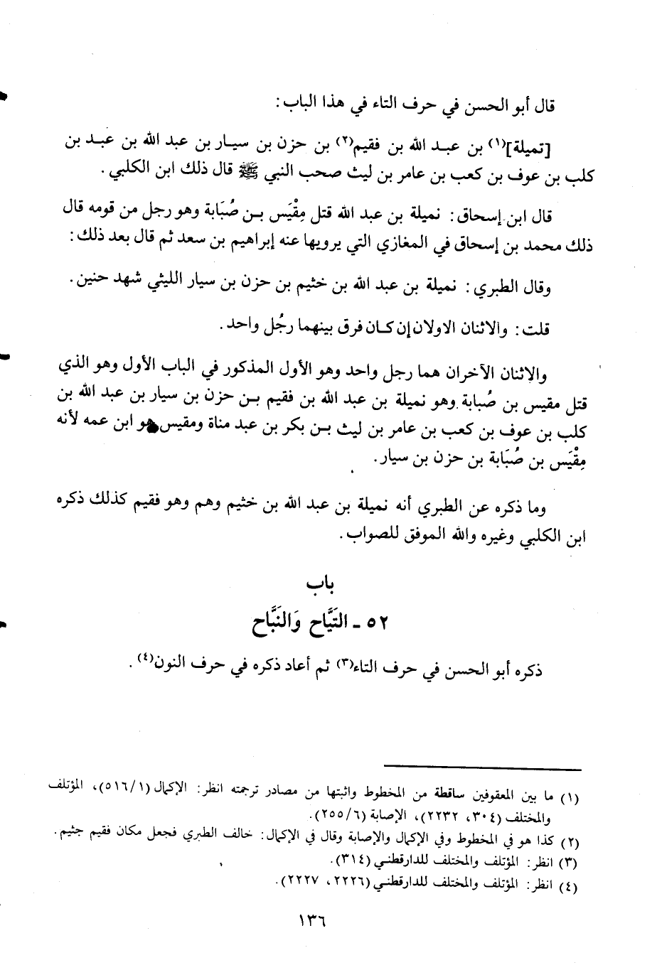 والاثنان الْآخرَانِ هما رجل وَاحِد وَهُوَ الأول الْمَذْكُور فِي الْبَاب الأول وَهُوَ الَّذِي قتل مقيس بن صبَابَة وَهُوَ نميلَة بن عبد الله بن فقيم بن حزن بن سيار بن عبد الله بن كلب بن عَوْف بن كَعْب بن عَامر بن لَيْث بن بكر بن عبد مَنَاة وَمقيس هُوَ ابْن عَمه لِأَنَّهُ مقيس بن صبَابَة بن حزن بن سيار