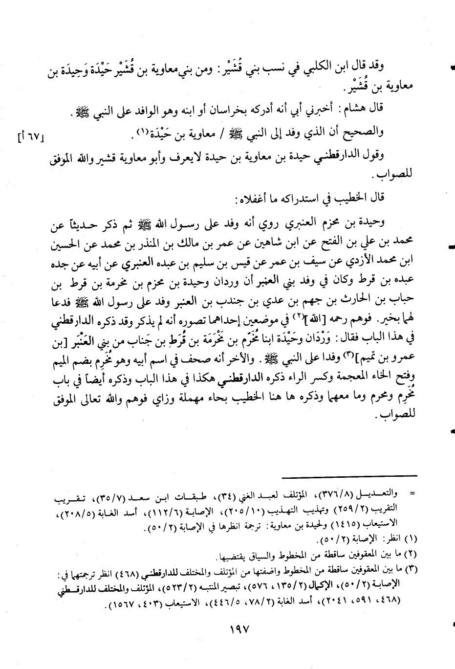 وَقَول الدَّارَقُطْنِيّ حيدة بن مُعَاوِيَة بن حيدة لَا يعرف وَأَبُو مُعَاوِيَة قُشَيْر وَالله الْمُوفق للصَّوَاب