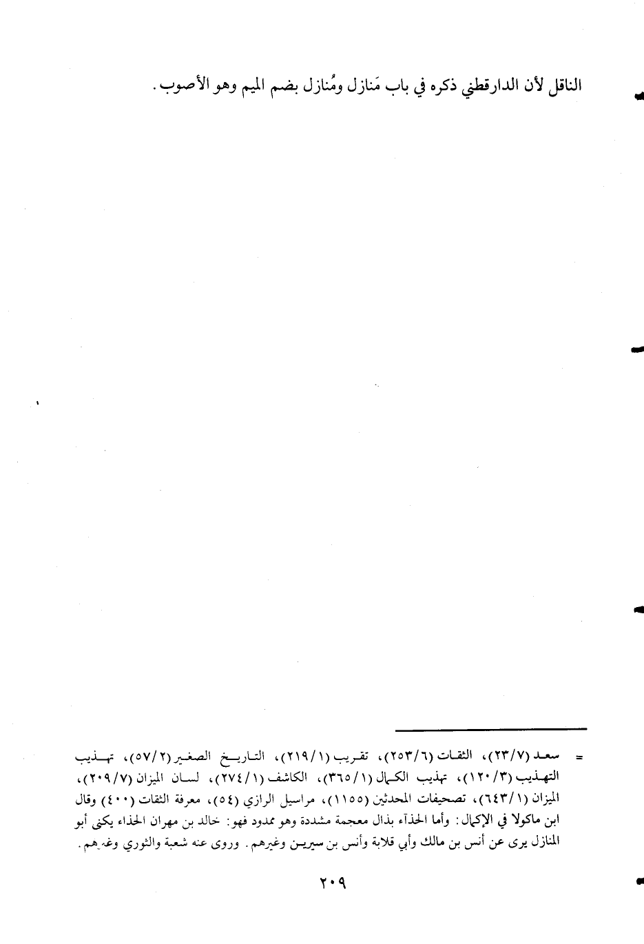 النَّاقِل لِأَن الدَّارَقُطْنِيّ ذكره فِي بَاب منَازِل ومنازل بِضَم الْمِيم وَهُوَ الأصوب