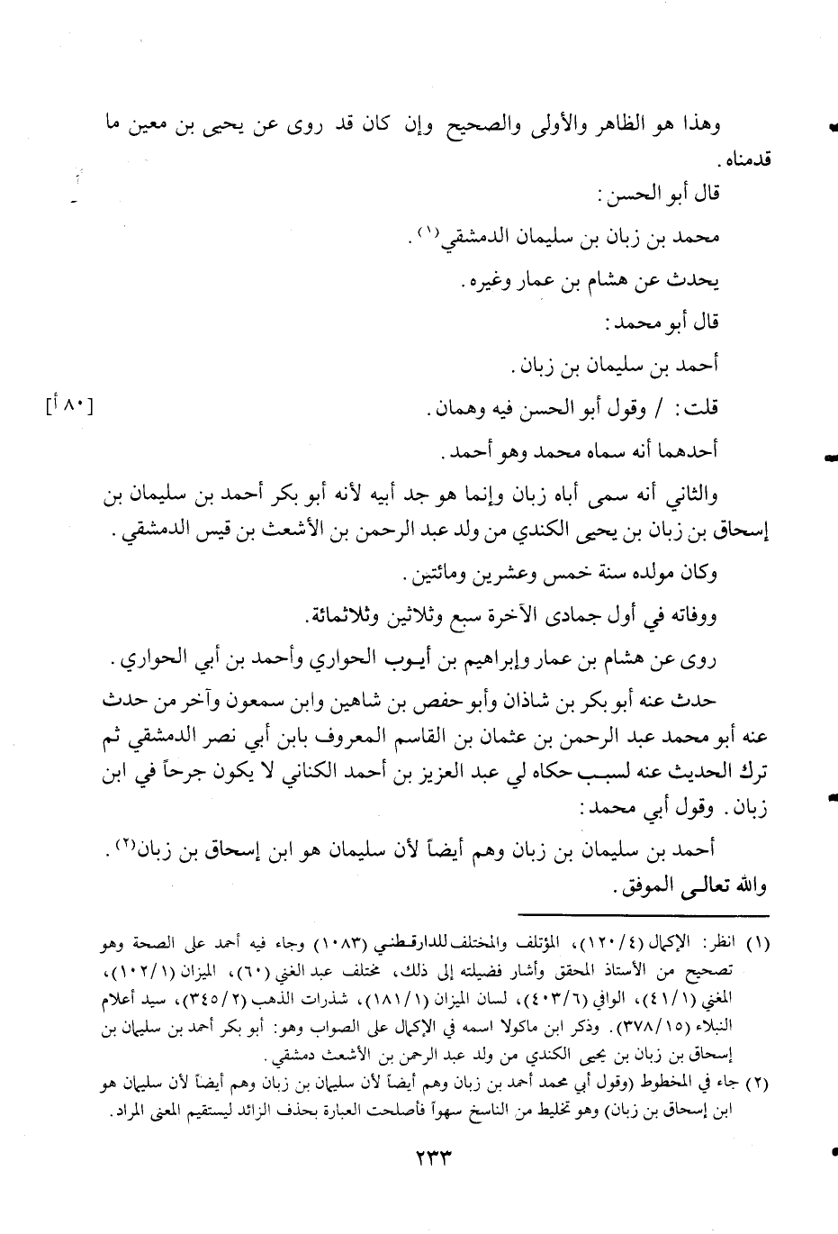 أَحْمد بن سُلَيْمَان بن زبان وهم أَيْضا لِأَن سُلَيْمَان هُوَ ابْن إِسْحَاق بن زبان وَالله تَعَالَى الْمُوفق