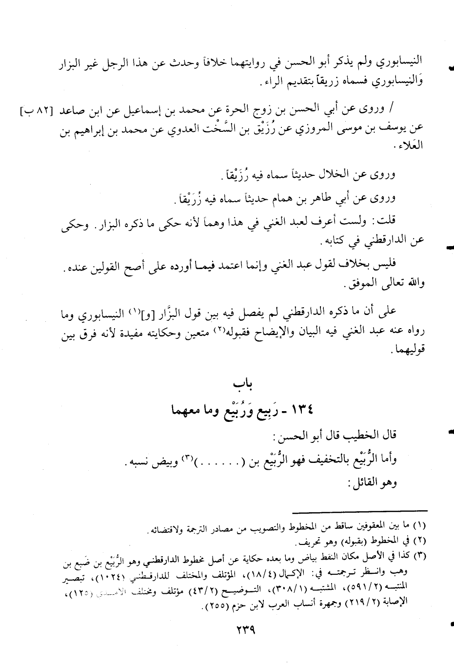 النَّيْسَابُورِي وَلم يذكر أَبُو الْحسن فِي روايتهما خلافًا وَحدث عَن هَذَا الرجل غير الْبَزَّار والنيسابوري فَسَماهُ زريقا بِتَقْدِيم الرَّاء