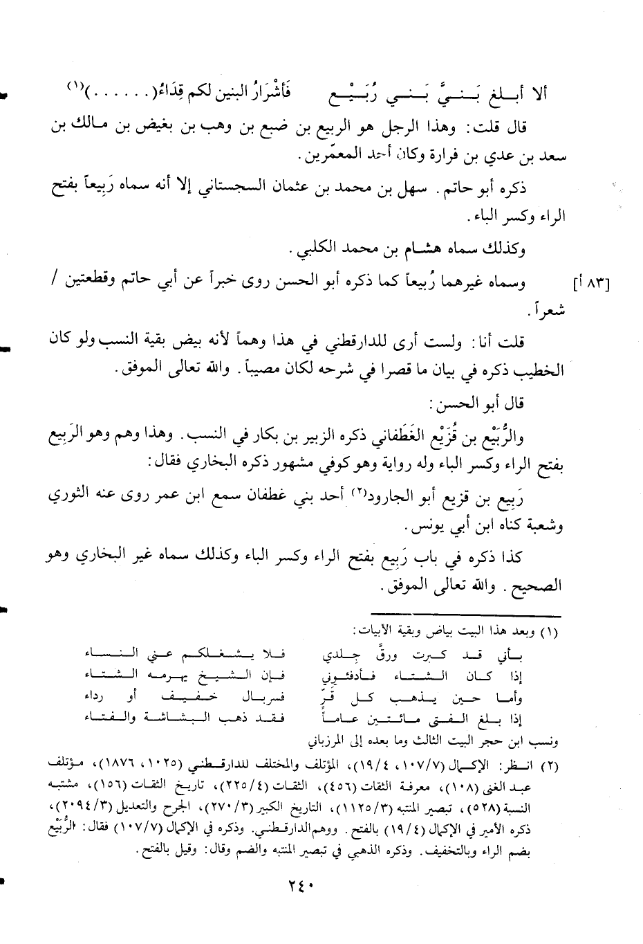 قلت أَنا وَلست أرى للدارقطني فِي هَذَا وهما لِأَنَّهُ بيض بَقِيَّة النّسَب وَلَو كَانَ الْخطب ذكره فِي بَيَان مَا قصرا فِي شَرحه لَكَانَ مصيبا وَالله تَعَالَى الْمُوفق