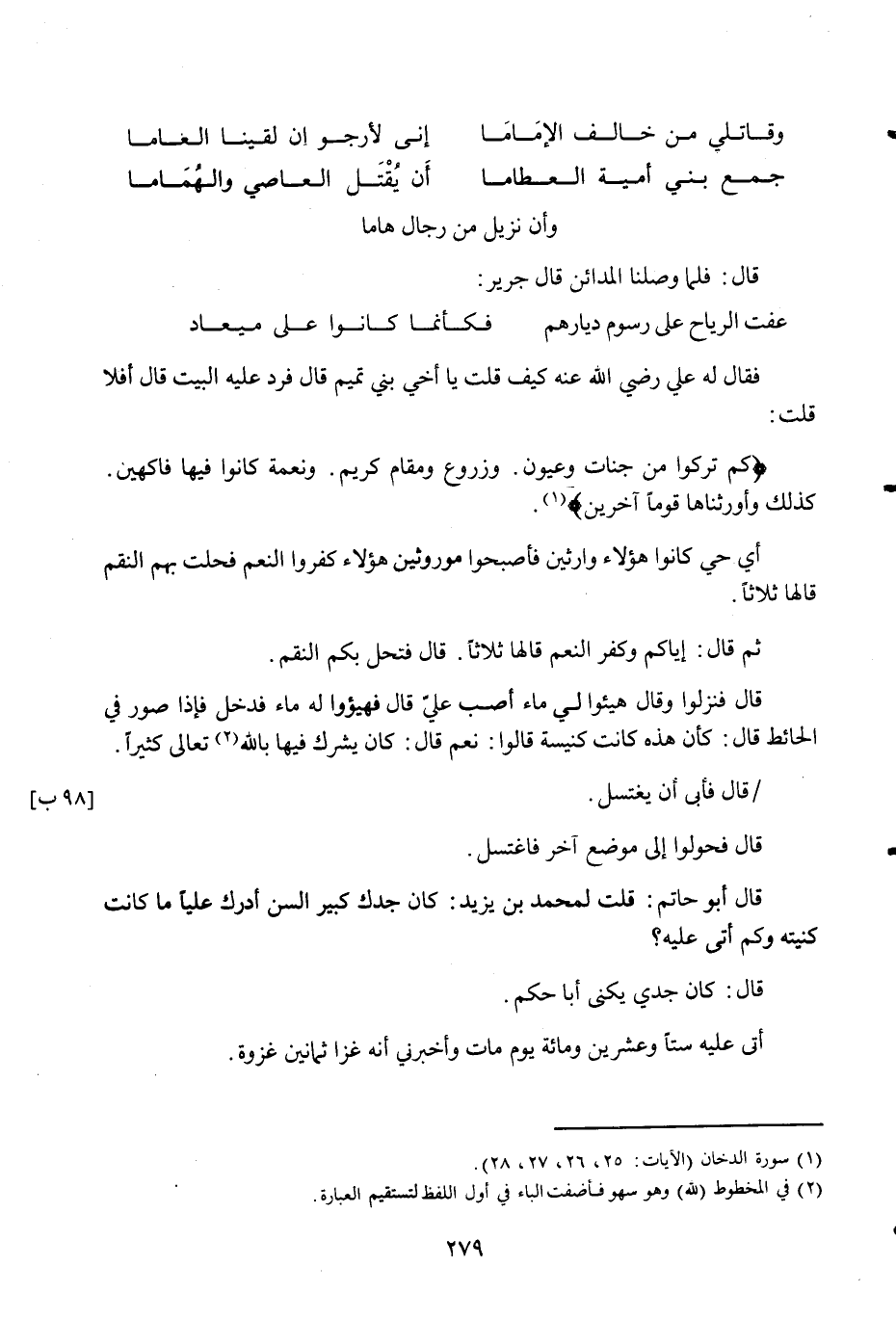 قَالَ فَلَمَّا وصلنا الْمَدَائِن قَالَ جرير