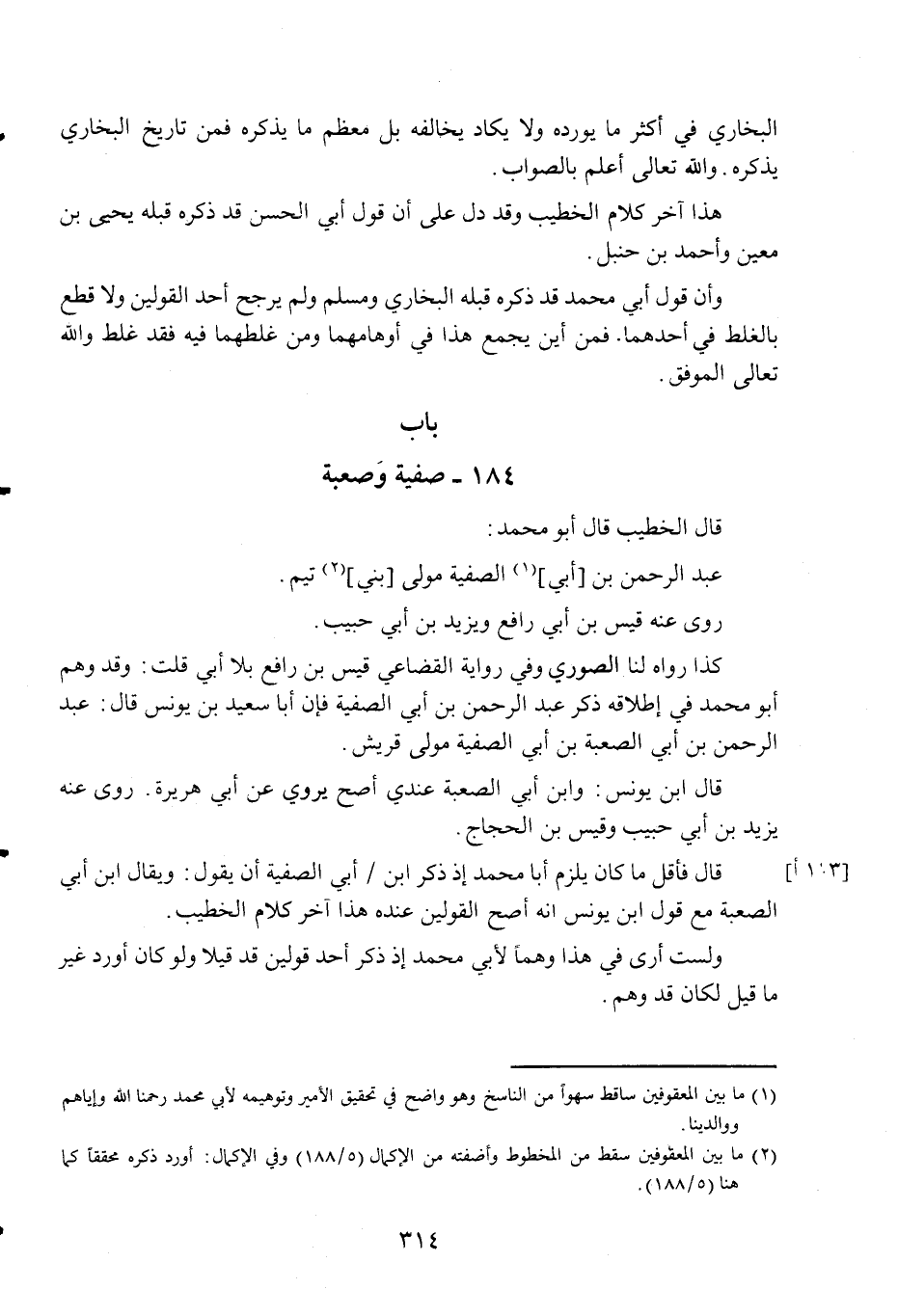 قَالَ فَأَقل مَا كَانَ يلْزم أَبَا مُحَمَّد إِذْ ذكر ابْن أبي الصفية أَن يَقُول ابْن أبي الصعبة مَعَ قَول ابْن يُونُس أَنه أصح الْقَوْلَيْنِ عِنْده هَذَا آخر كَلَام الْخَطِيب