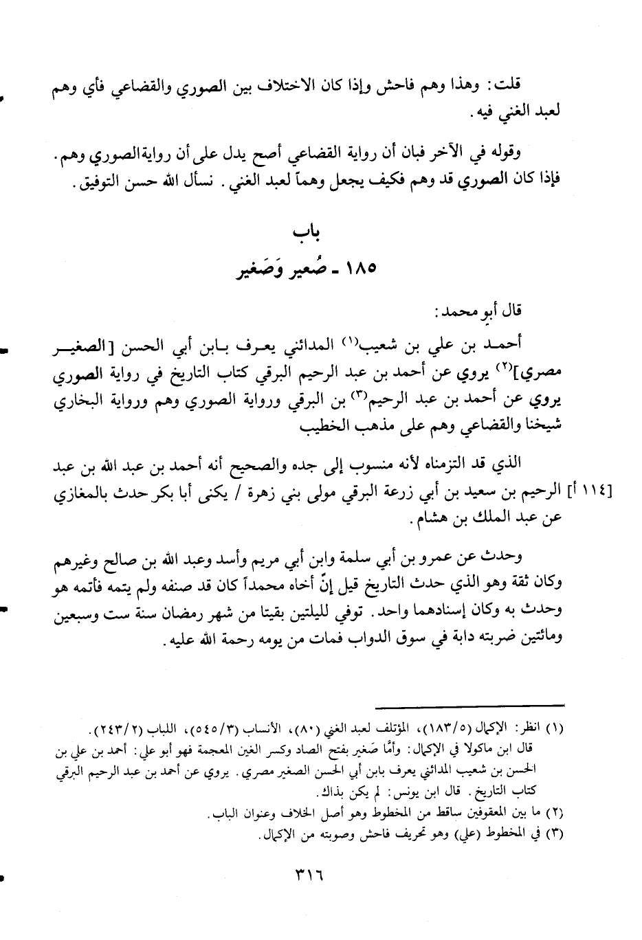 أَحْمد بن عَليّ بن شُعَيْب الْمَدَائِنِي يعرف بِابْن أبي الْحسن الصَّغِير مصري يروي عَن أَحْمد بن عبد الرَّحِيم البرقي كتاب التَّارِيخ فِي رِوَايَة الصُّورِي يروي عَن أَحْمد بن عبد الرَّحِيم بن البرقي وَرِوَايَة الصُّورِي وهم وَرِوَايَة البُخَارِيّ شيخما والقضاعي وهم على مَذْهَب الْخَطِيب