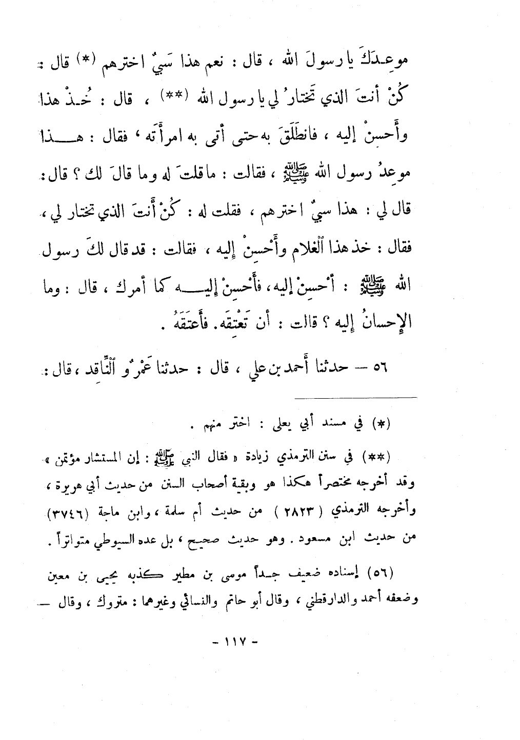 56 - حَدَّثَنَا أَحْمَدُ بْنُ عَلِيٍّ قَالَ: حَدَّثَنَا عَمْرٌو النَّاقِدُ قَالَ: حَدَّثَنَا خَلَفُ بْنُ تَمِيمٍ قَالَ: حَدَّثَنَا مُوسَى بْنُ مَطِيرٍ , عَنْ أَبِيهِ , عَنْ أَبِي هُرَيْرَةَ قَالَ: قَالَ أَبُو بَكْرٍ الصِّدِّيقُ رَضِيَ اللَّهُ عَنْهُ لِابْنِهِ: " يَا بُنَيَّ إِنْ حَدَثَ فِي النَّاسِ حَدَثٌ §فَائْتِ الْغَارَ الَّذِي رَأَيْتَنِي اخْتَبَأْتُ فِيهِ أَنَا وَرَسُولُ اللَّهِ صَلَّى اللهُ عَلَيْهِ وَسَلَّمَ , فَكُنْ فِيهِ فَإِنَّهُ سَيَأْتِيكَ فِيهِ رِزْقُكَ غُدْوَةً وَعَشِيَّةً