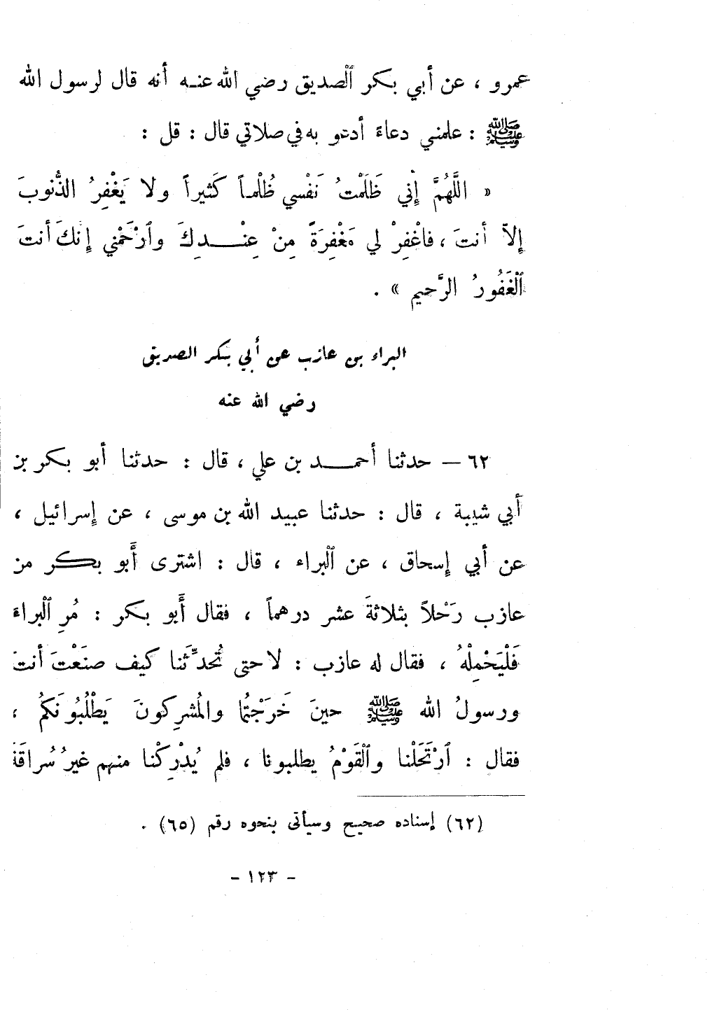 §الْبَرَاءُ بْنُ عَازِبٍ عَنْ أَبِي بَكْرٍ الصِّدِّيقِ رَضِيَ اللَّهُ عَنْهُ