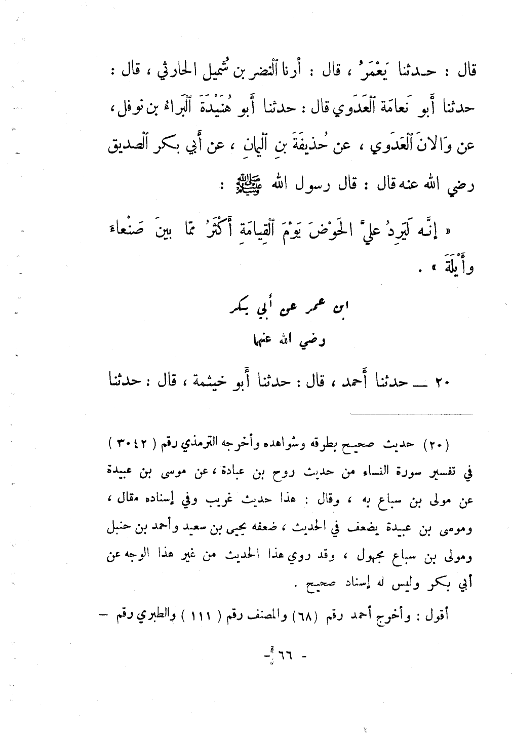 §ابْنُ عُمَرَ عَنْ أَبِي بَكْرٍ رَضِيَ اللَّهُ عَنْهُمَا
