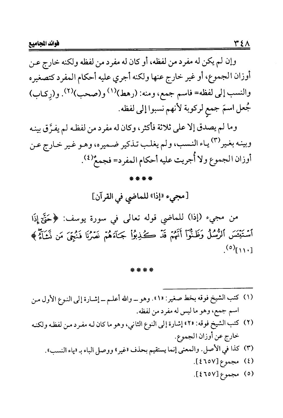 (¬١) كتب الشيخ فوقه بخط صغير: «١». وهو ــ والله أعلم ــ إشارة إلى النوع الأول من اسم جمع، وهو ما ليس له مفرد من لفظه.