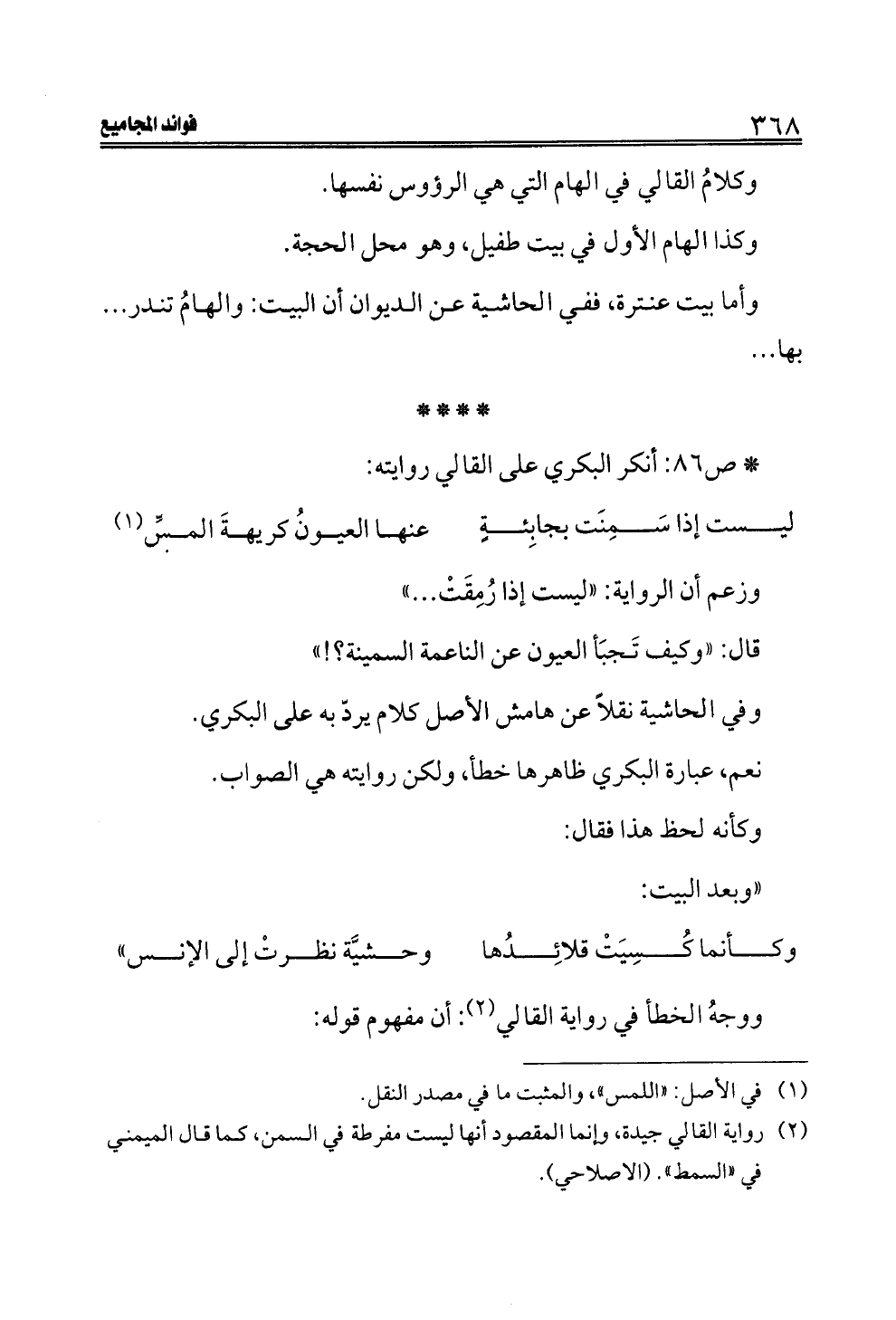 (¬٢) رواية القالي جيدة، وإنما المقصود أنها ليست مفرطة في السمن، كما قال الميمني في «السمط». (الاصلاحي).