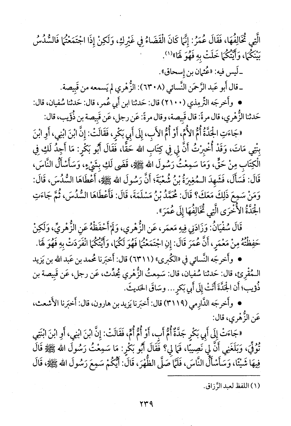 • وأخرجه النَّسَائي في «الكبرى» (٦٣١١) قال: أخبرنا محمد بن عبد الله بن يزيد المُقرِئ، قال: حدثنا سفيان، قال: سمعت الزُّهْري يحدث، عن رجل، عن قَبيصَة بن ذؤيب؛ أن الجدة أتت إلى أَبي بكر ... وساق الحديث.