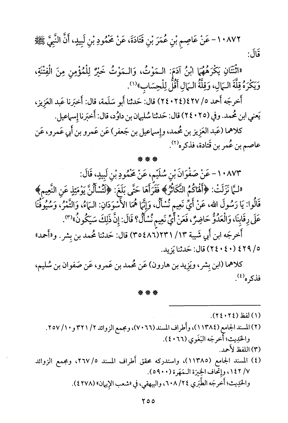 (¬٢) المسند الجامع (١١٣٨٤)، وأطراف المسند (٧٠٦٦)، ومَجمَع الزوائد ٢/ ٣٢١ و ١٠/ ٢٥٧.
