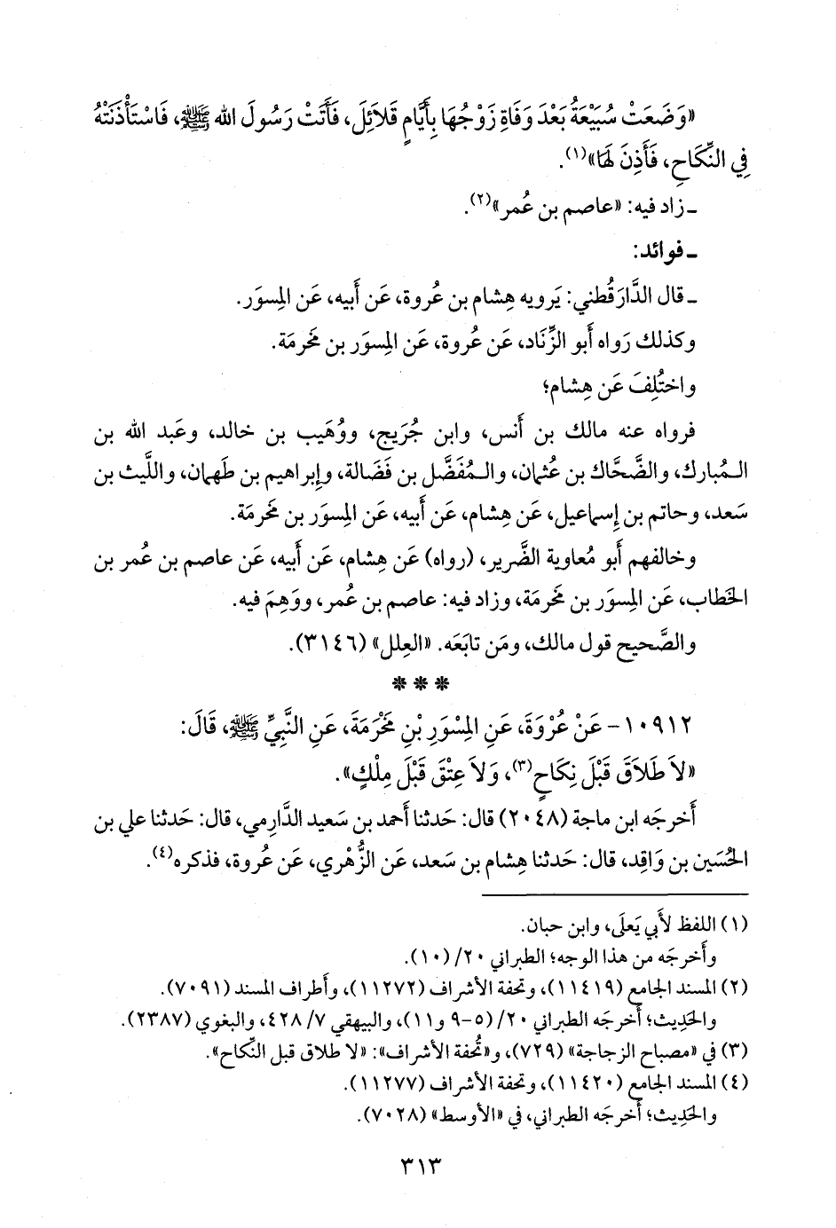 - قال الدارقُطني: يرويه هشام بن عروة، عن أبيه، عن المسور.