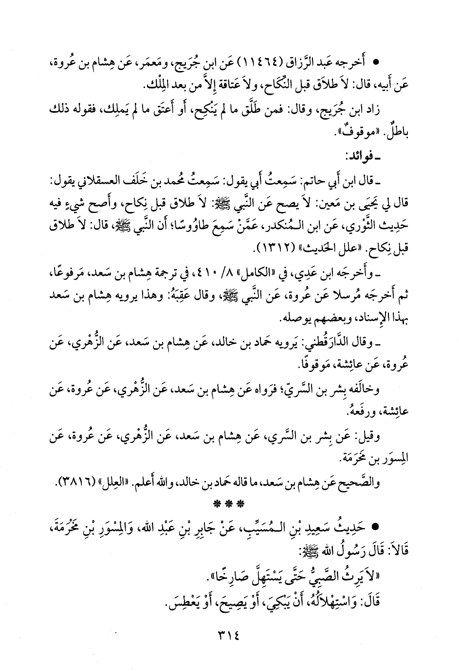 - وقال الدارقُطني: يرويه حماد بن خالد، عن هشام بن سعد، عن الزُّهْري، عن عروة، عن عائشة، موقوفا.