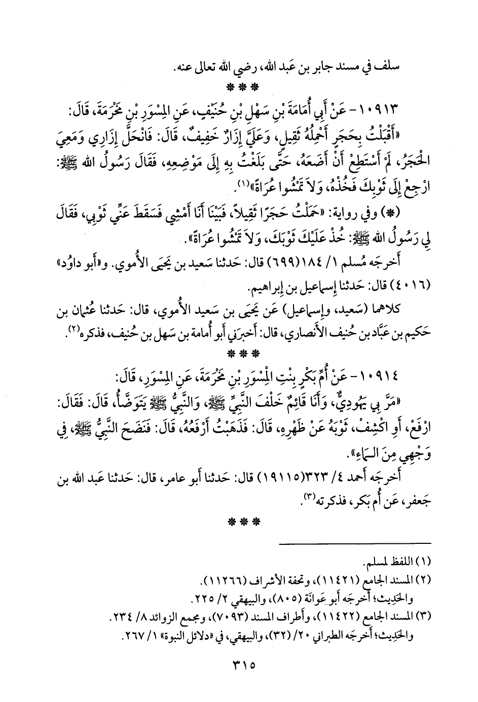 ١٠٩١٣ - عن أَبي أُمامة بن سهل بن حنيف، عن المسور بن مخرمة، قال:
