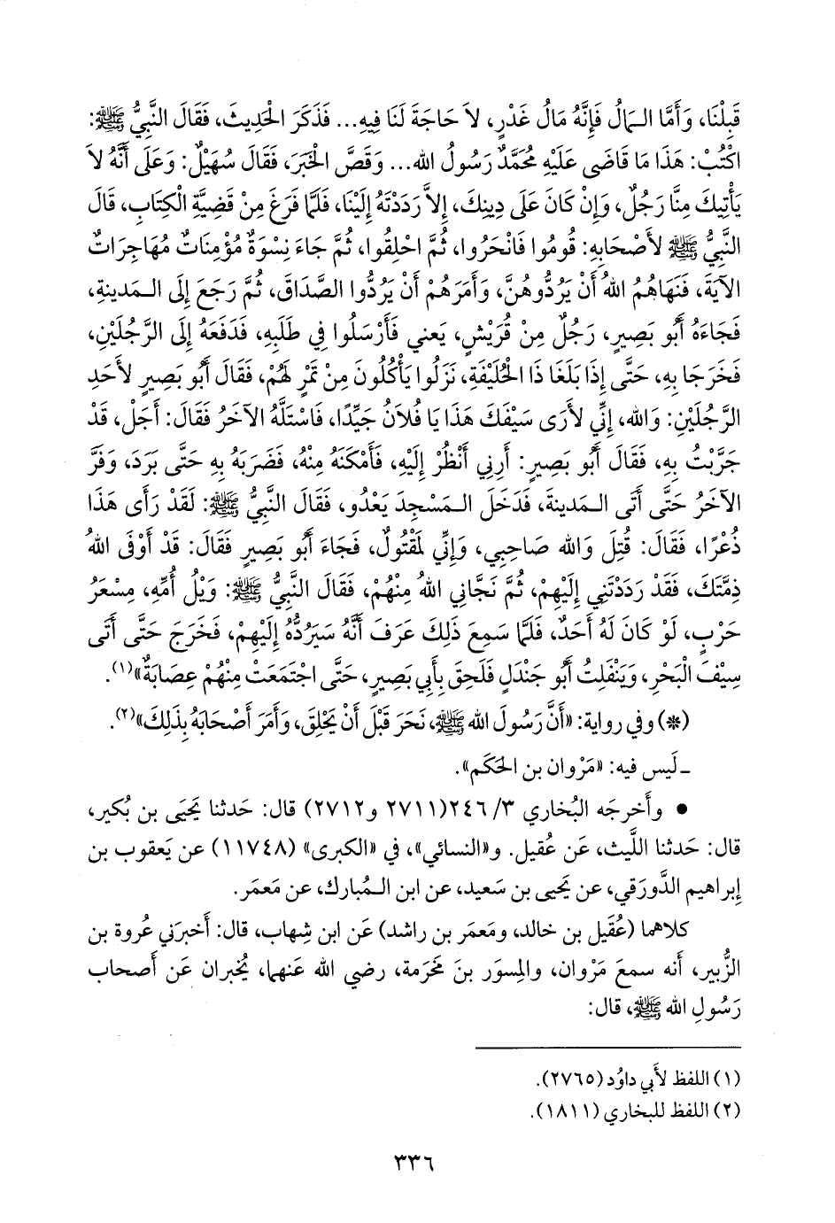 كلاهما (عُقيل بن خالد، ومَعمَر بن راشد) عن ابن شهاب، قال: أخبرني عروة بن الزبير, أنه سمع مروان، والمسور بن مخرمة، رضي الله عنهما، يخبران عن أصحاب رسول الله صَلى الله عَليه وسَلم قال:
