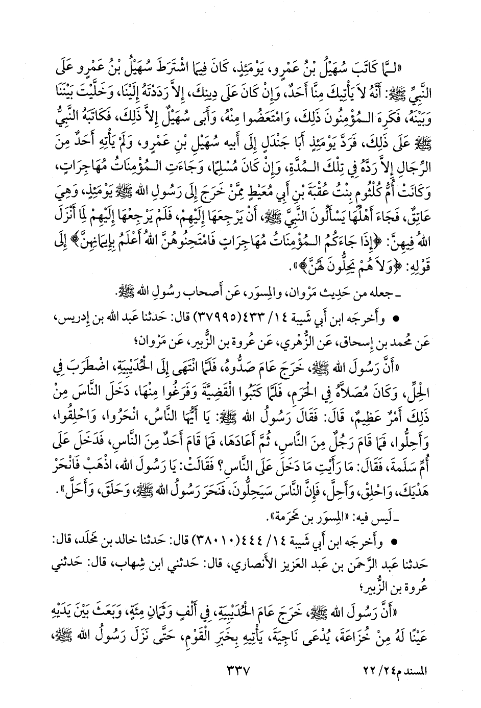 ـ جعله من حديث مروان، والمسور، عن أصحاب رسول الله صَلى الله عَليه وسَلم.