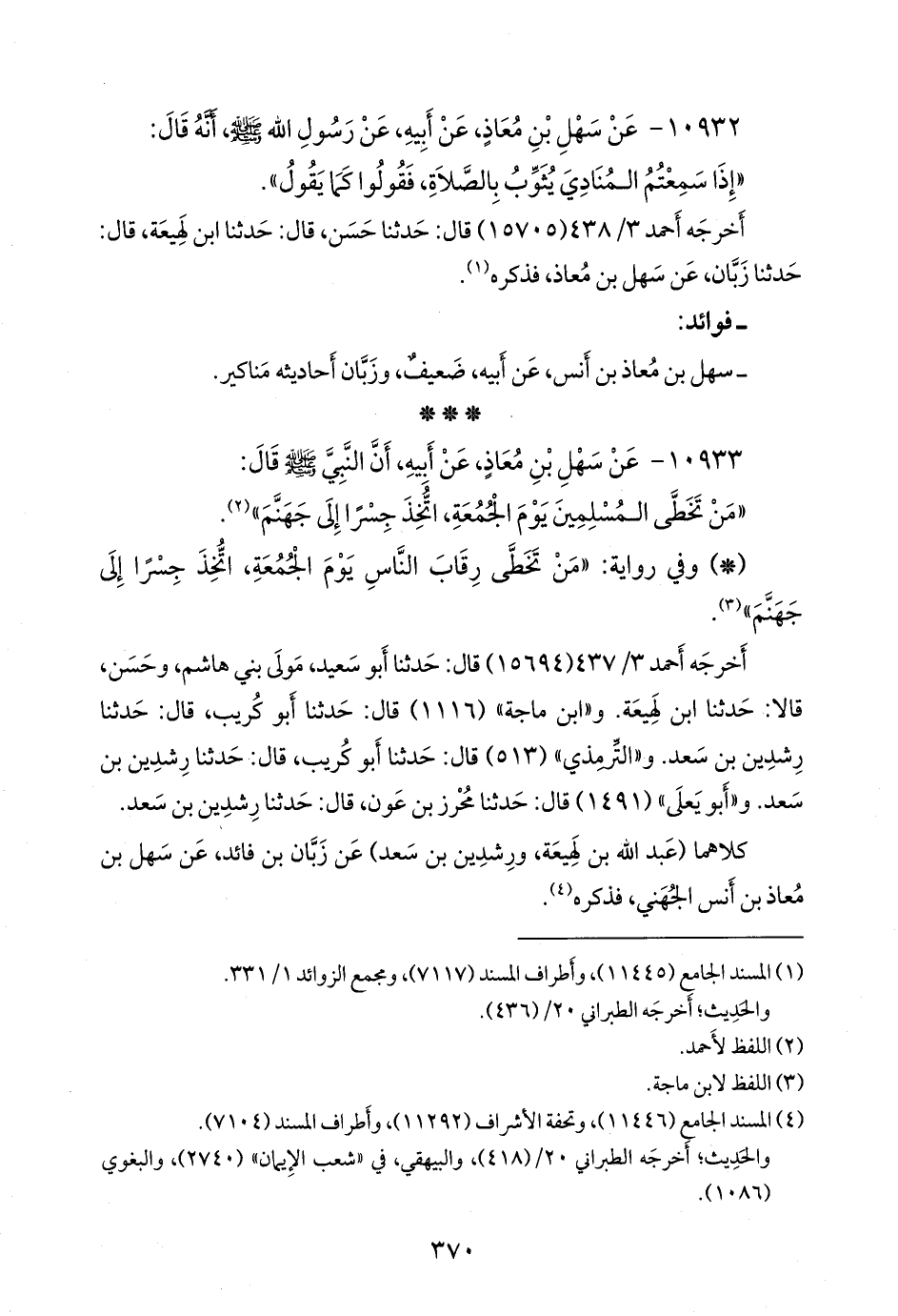 - قلنا إِسناده ضعيفٌ؛ لضعف سهل بن معاذ، وزبان بن فائد. انظر فوائد الحديث رقم (١٠٩٢٨).