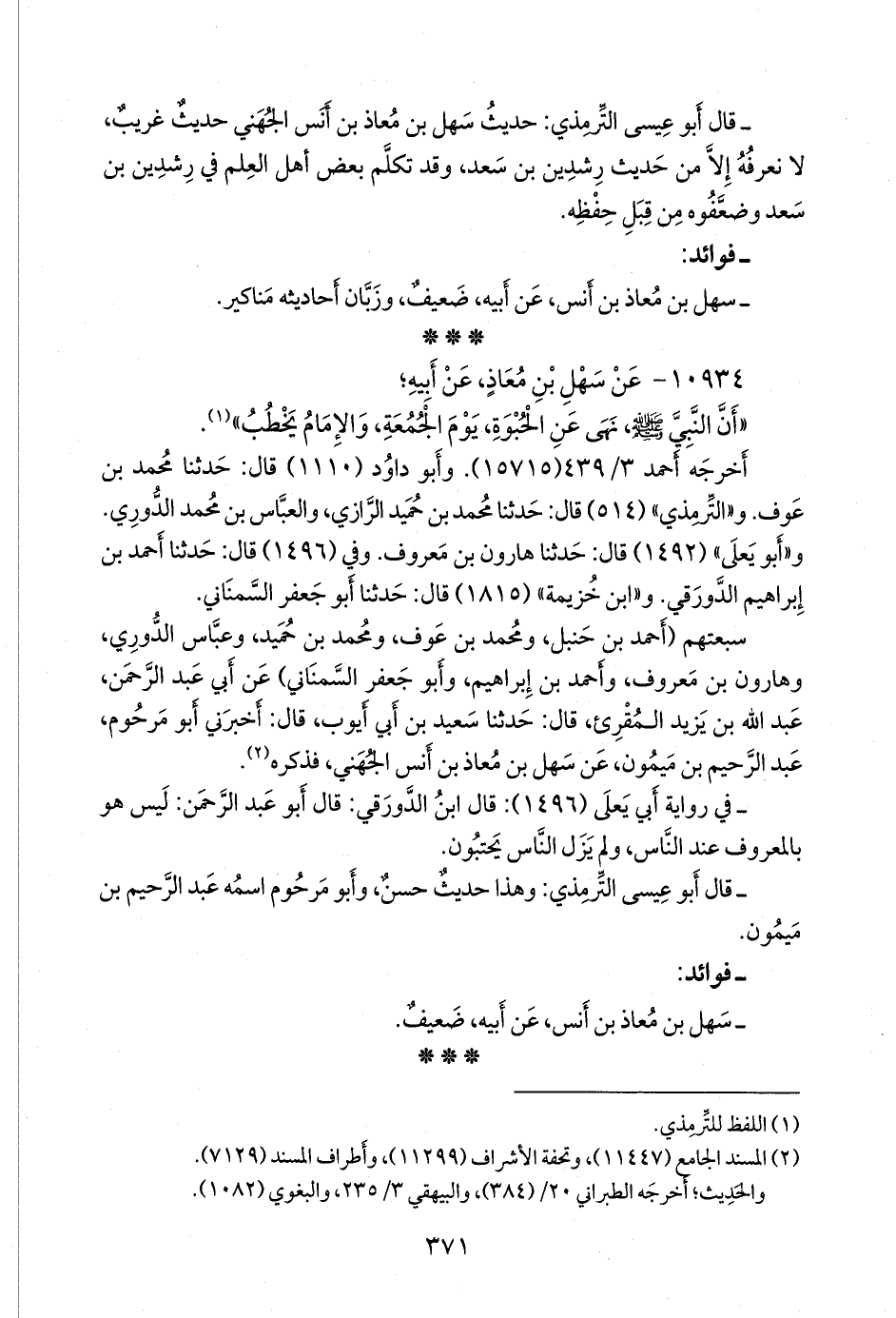سبعتهم (أحمد بن حنبل، ومحمد بن عوف، ومحمد بن حميد، وعباس الدوري، وهارون بن معروف، وأحمد بن إبراهيم، وأَبو جعفر السِّمناني محمد بن جعفر بن أبي الحسين) عن أبي عبد الرَّحمَن عبد الله بن يزيد المُقرِئ، عن سعيد بن أَبي أَيوب، عن أَبي مرحوم عبد الرحيم بن ميمون، عن سهل بن معاذ بن أَنس الجهني، فذكره (¬٢).