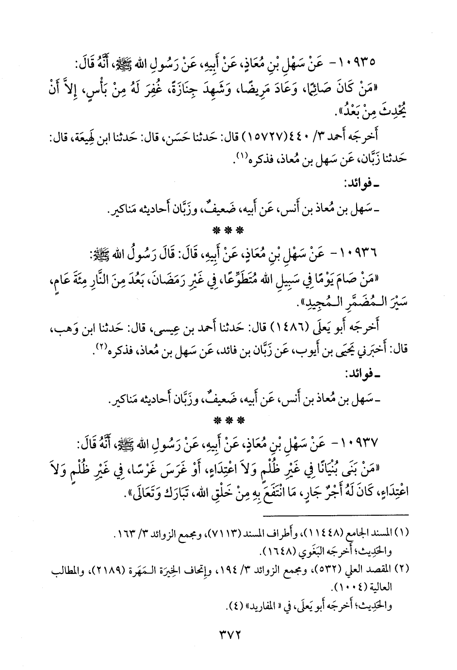 - قلنا إِسناده ضعيفٌ؛ لضعف سهل بن معاذ، وزبان بن فائد. انظر فوائد الحديث رقم (١٠٩٢٨).